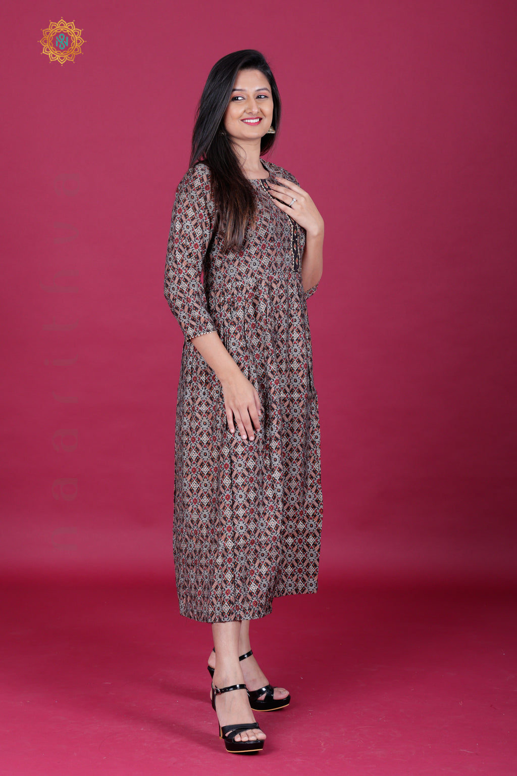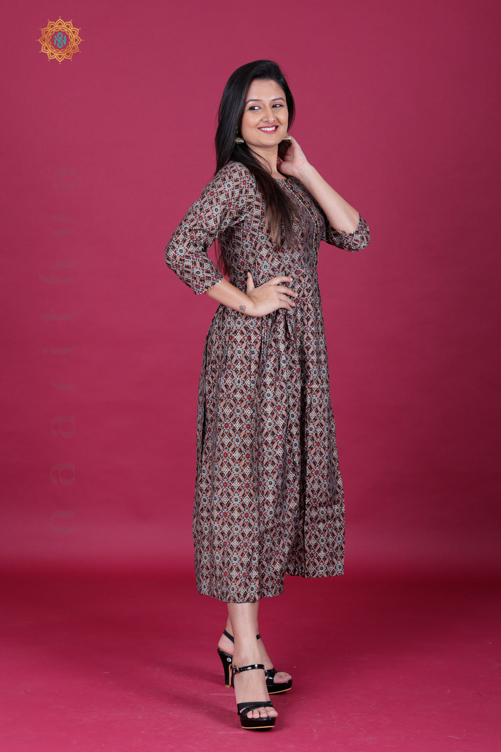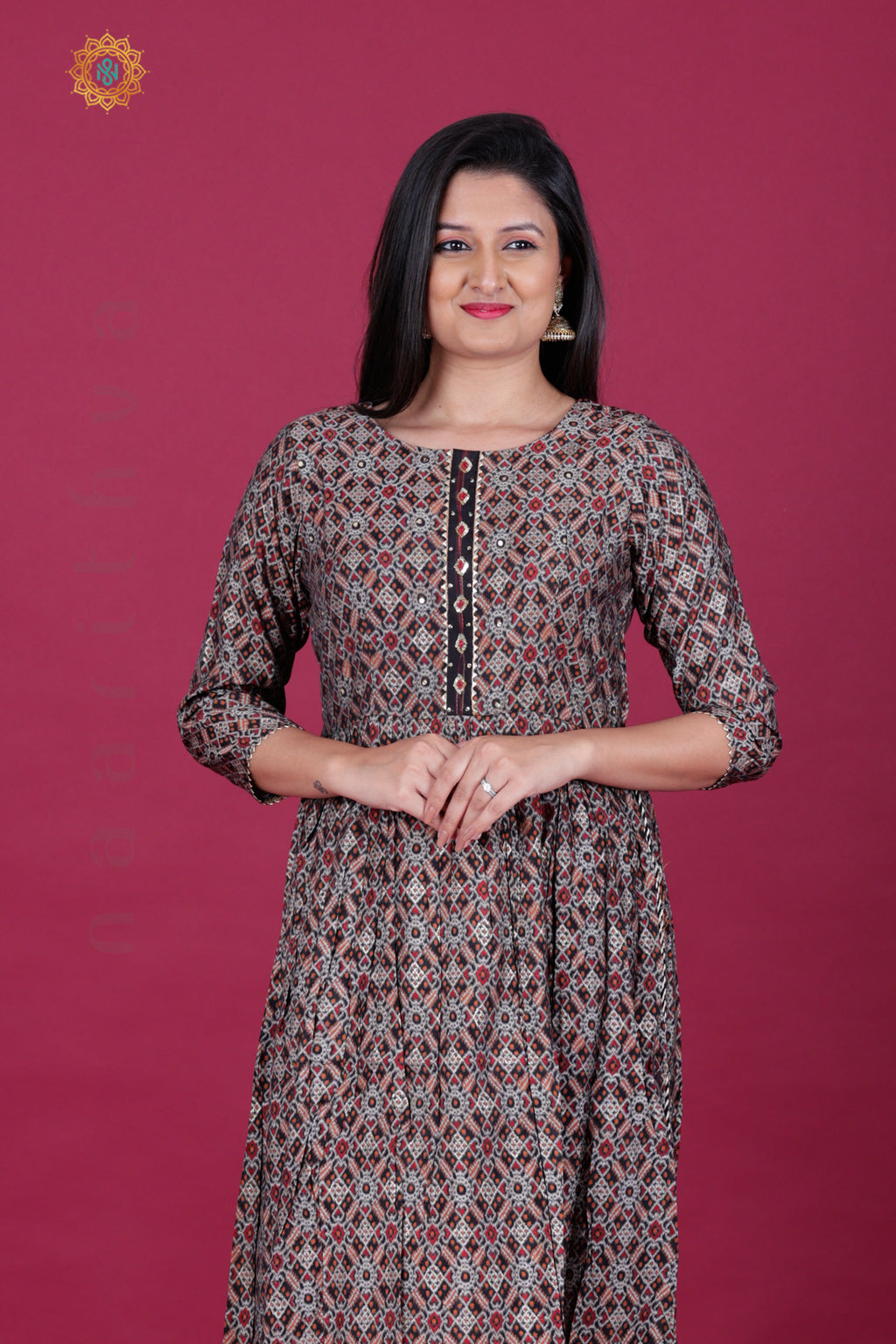 BLACK & GREY - CASUAL WEAR ONE PIECE KURTI
