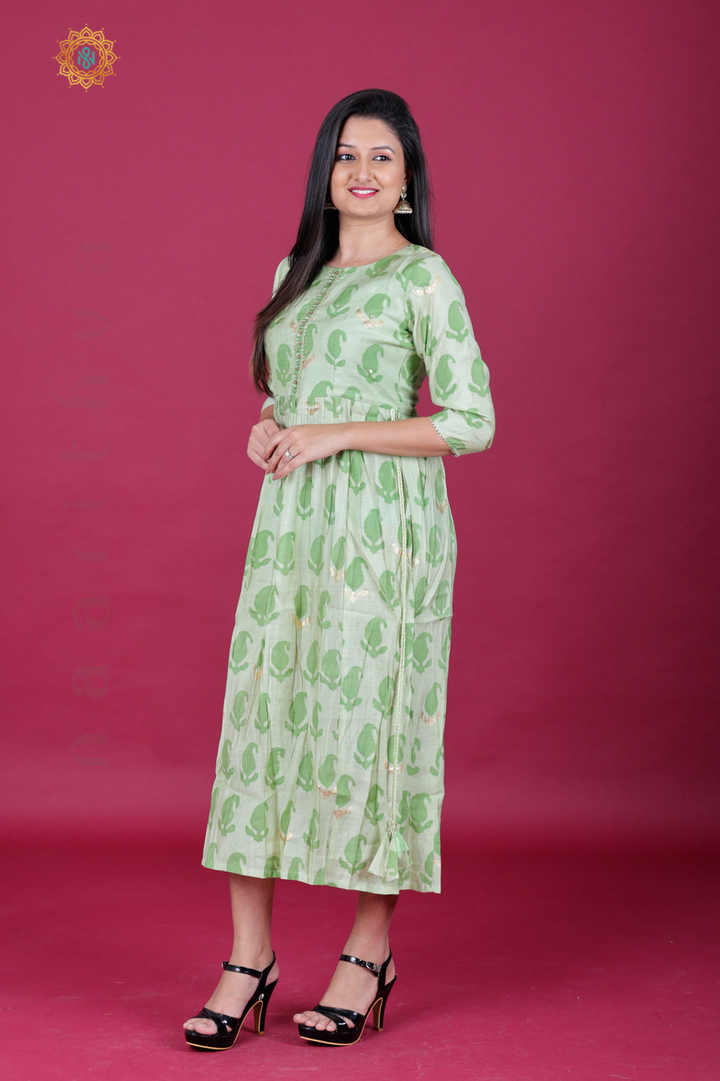 PISTA GREEN - CASUAL WEAR ONE PIECE KURTI
