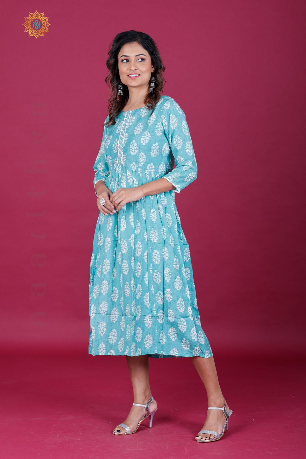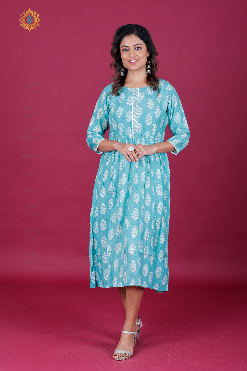 SEA GREEN - CASUAL WEAR ONE PIECE KURTI
