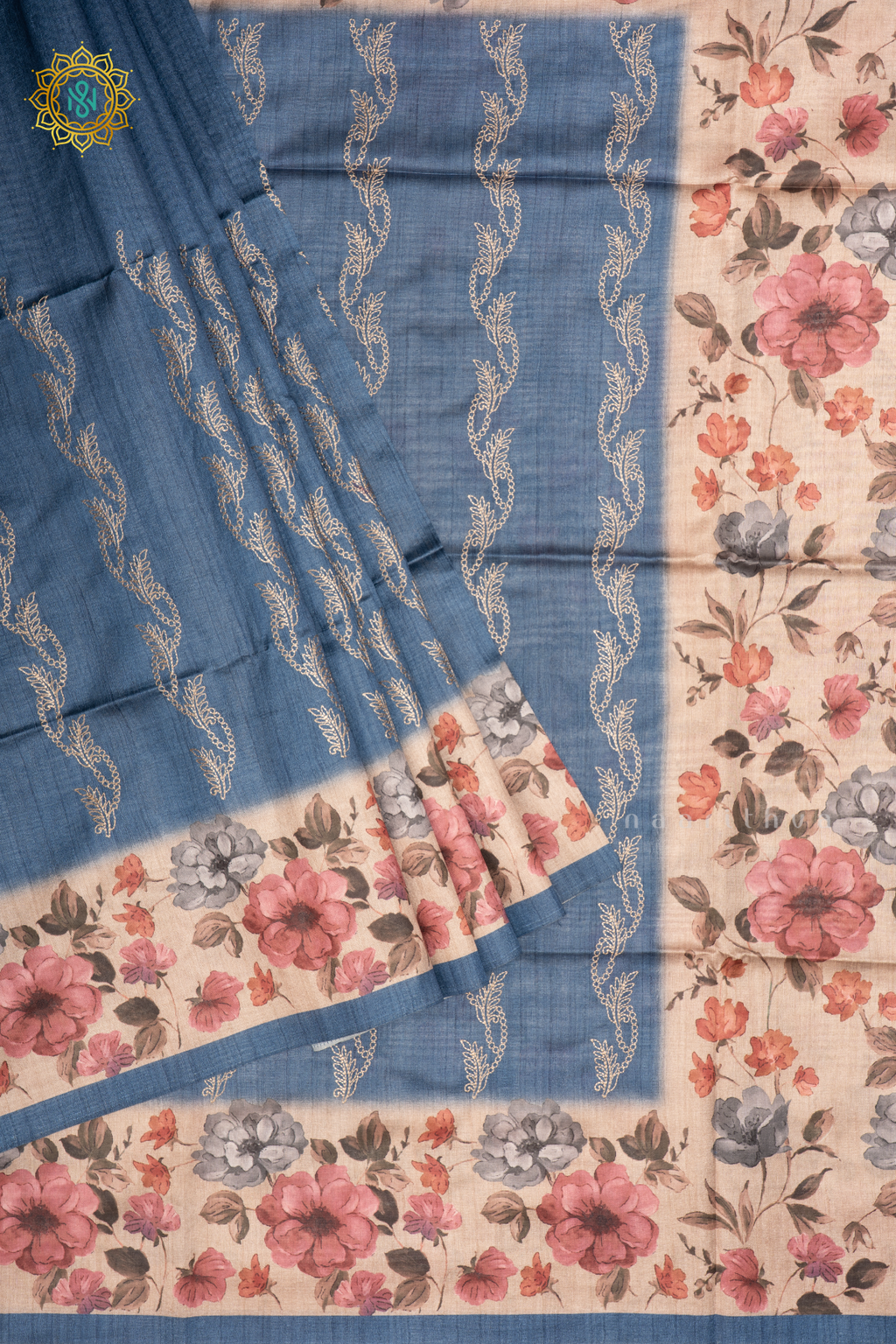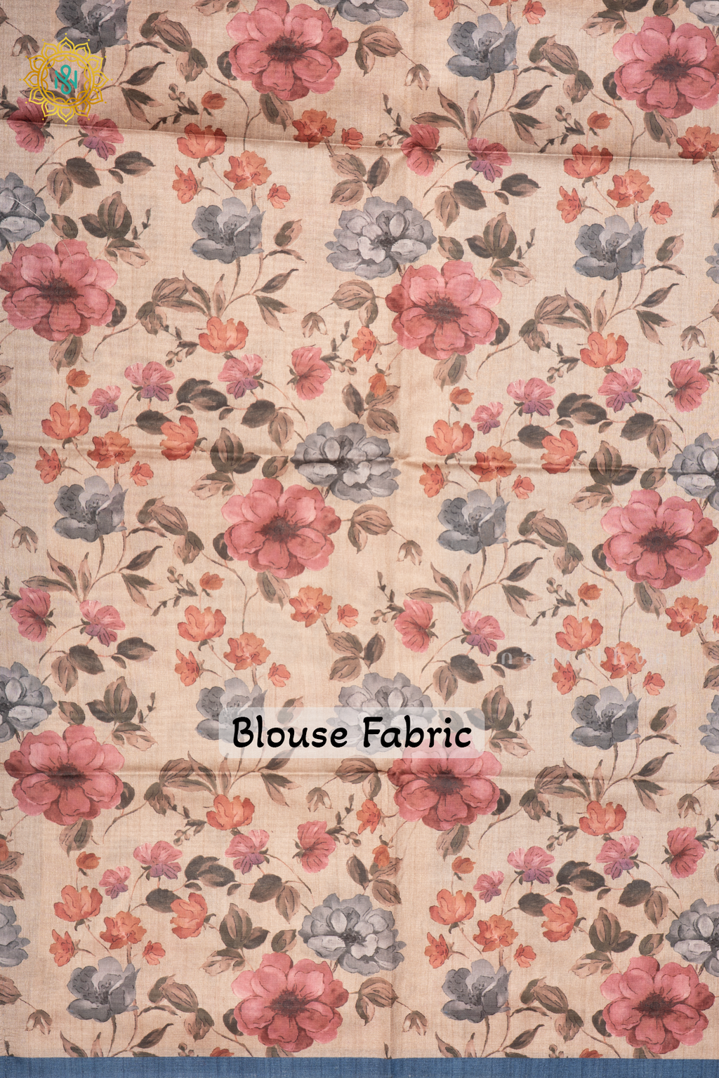 BLUE WITH BEIGE - SEMI TUSSAR SILK