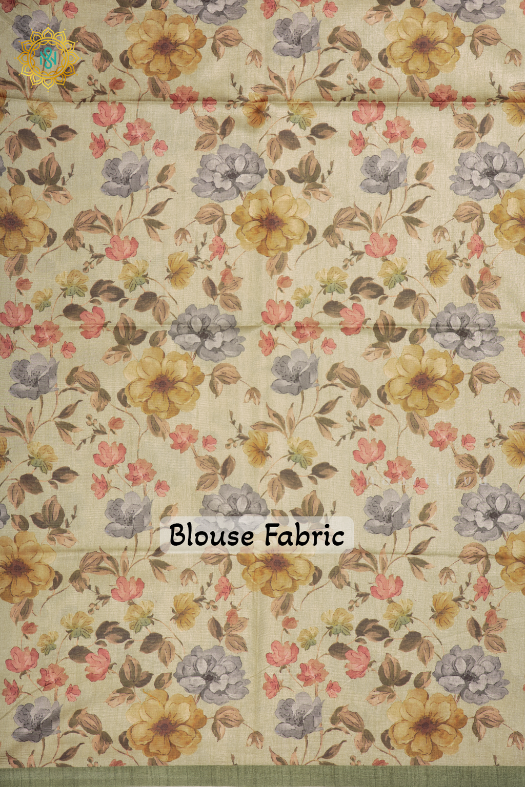 GREEN WITH BEIGE - SEMI TUSSAR SILK