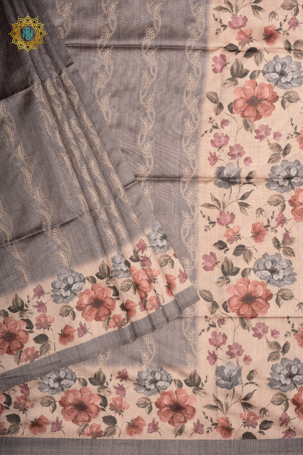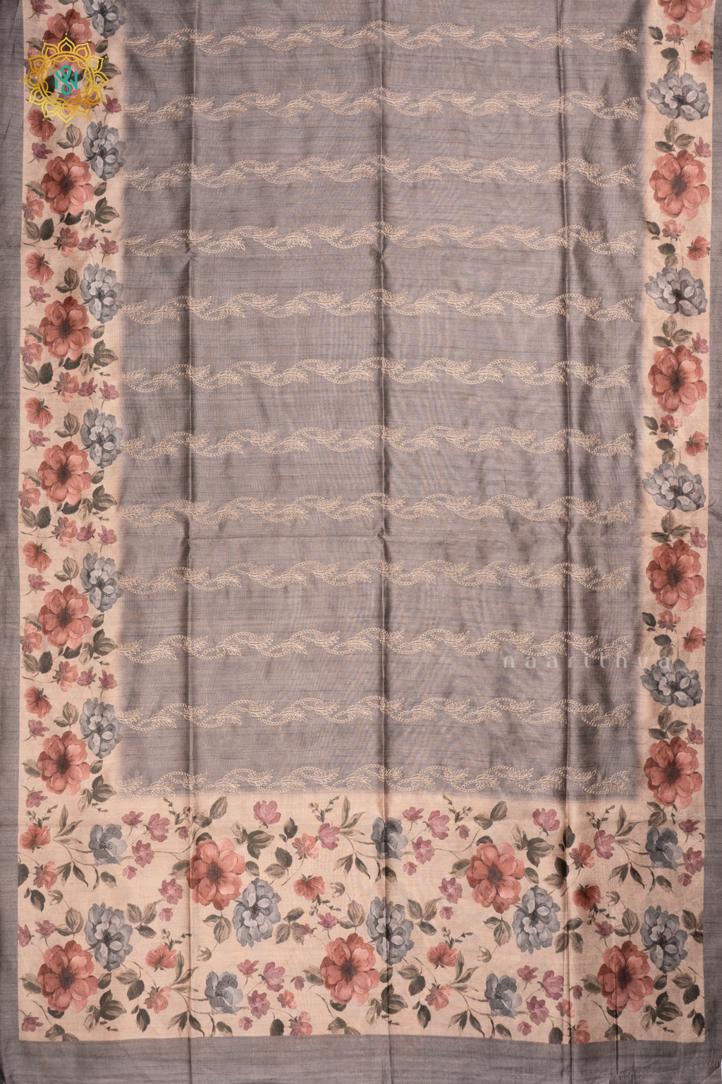 GREY WITH BEIGE - SEMI TUSSAR SILK