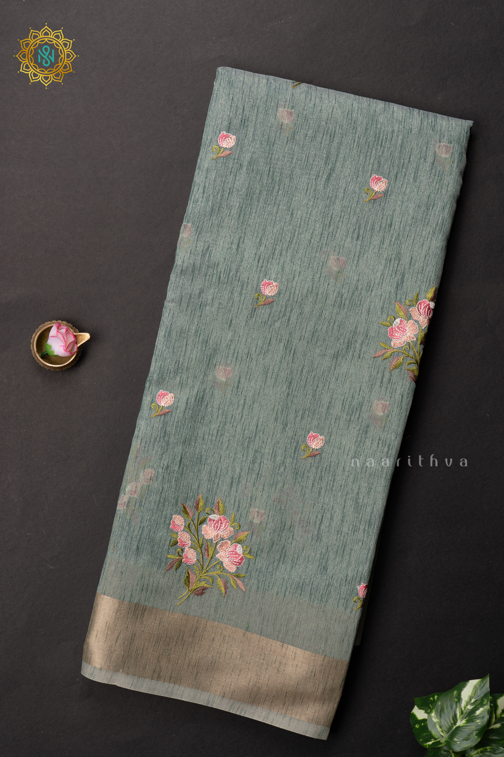 • Design : Embroidery Buttas On The Body With Tissue Border, Pallu & Blouse