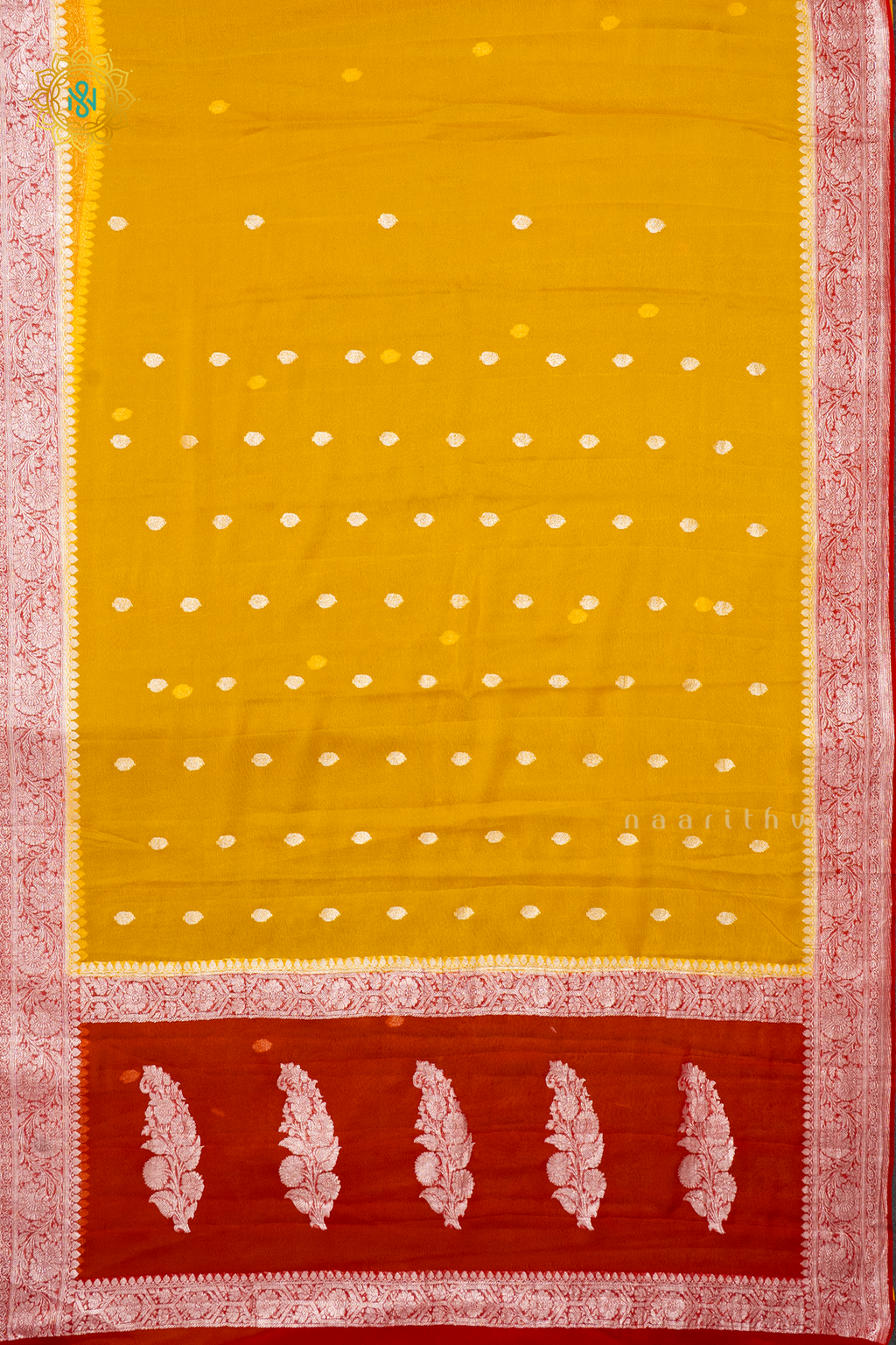 YELLOW WITH RED - PURE BANARASI CHIFFON