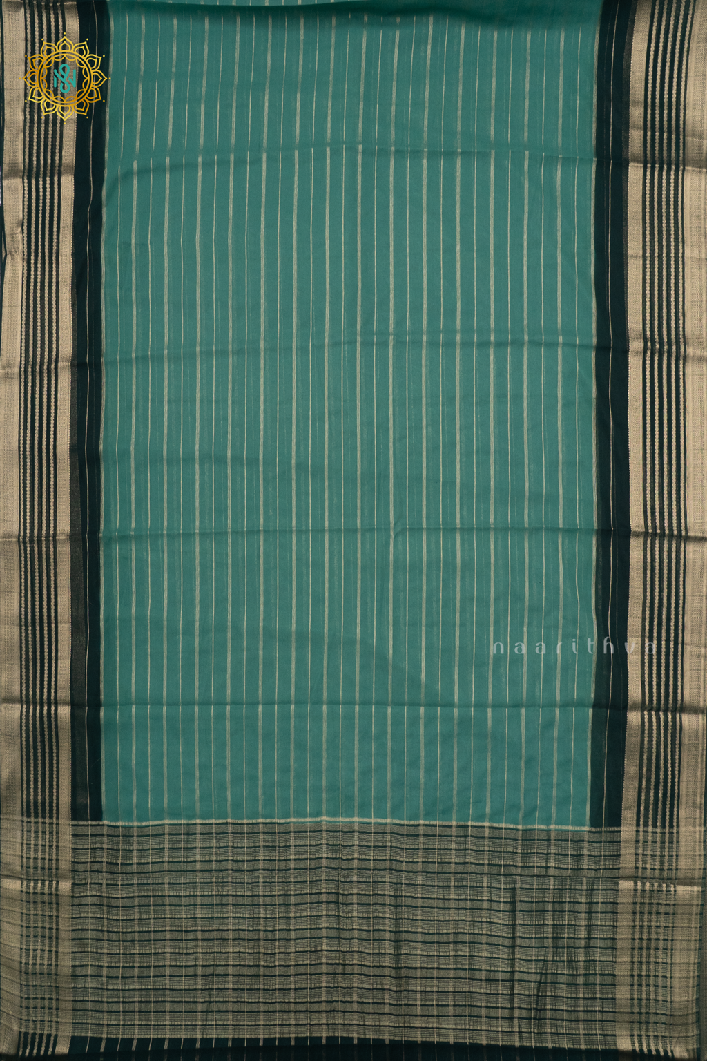 • Design : Zari Stripes On The Body With Contrast Zari Border, Pallu & Blouse