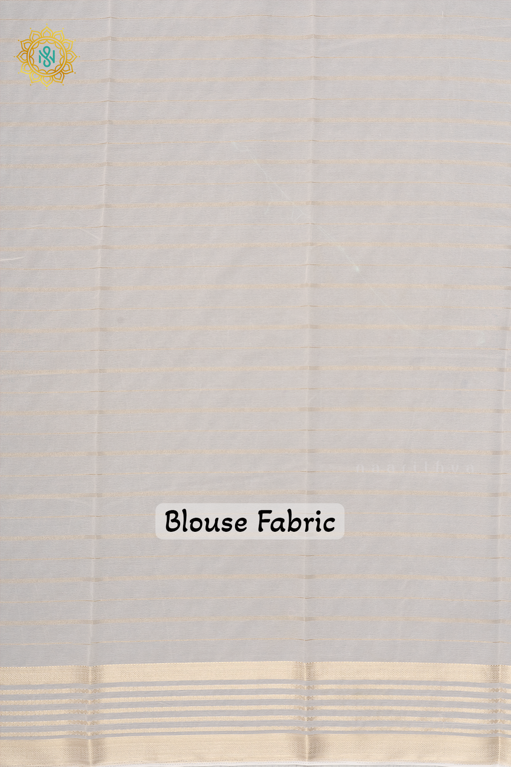• Design : Zari Stripes On The Body With Contrast Zari Border, Pallu & Blouse