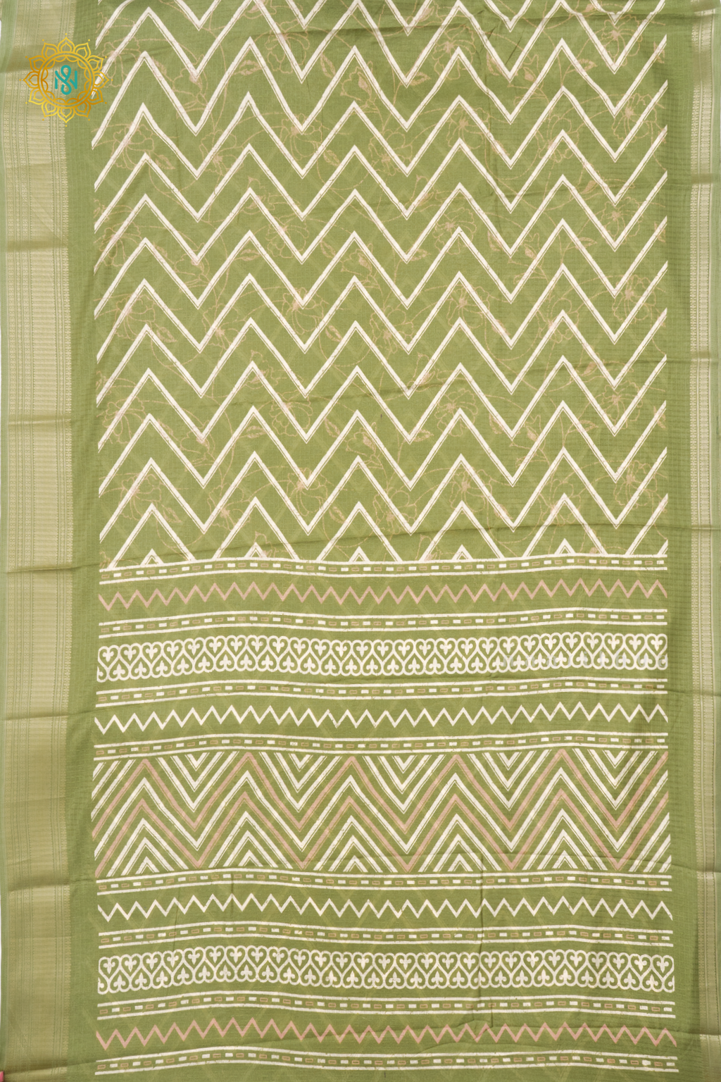 • Design : Printed Body With Zari Border, Pallu & Blouse