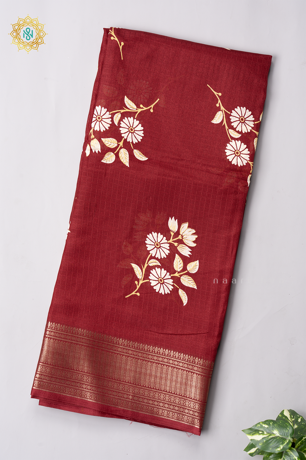 • Design : Printed Body With Zari Border, Pallu & Blouse