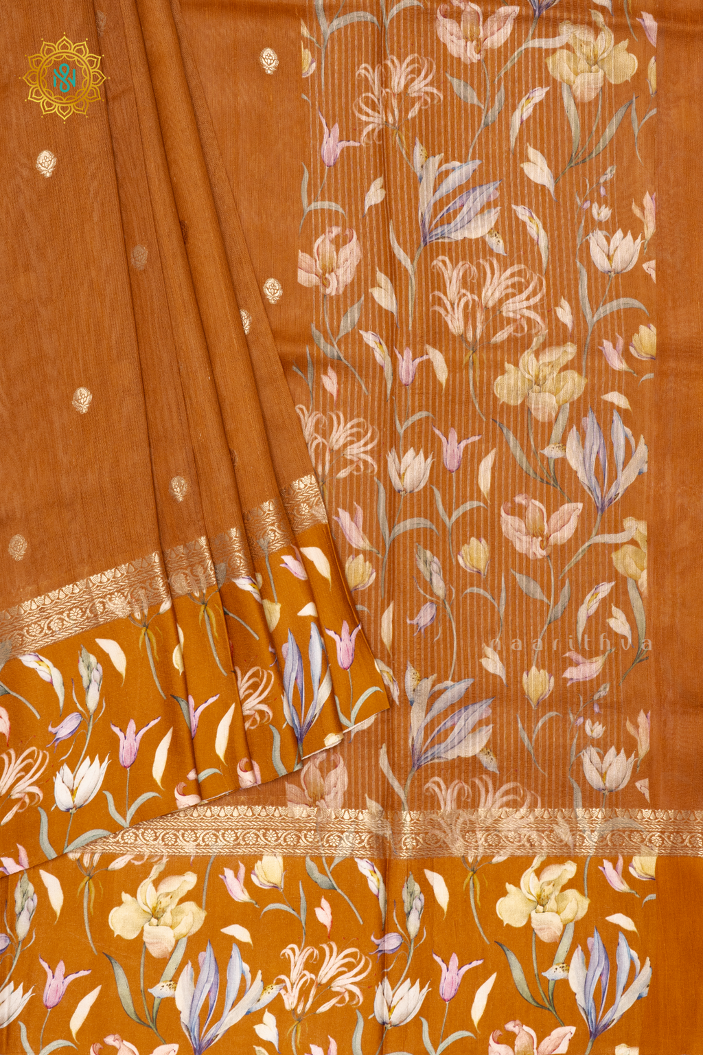 • Design : Zari Buttas On The Body With Satin DIgital Printed Border, Pallu & Blouse