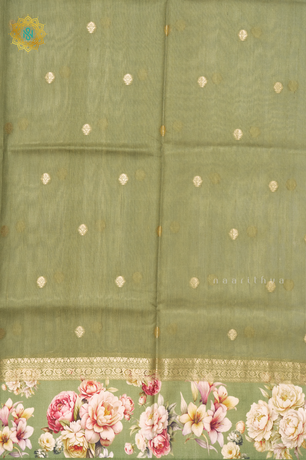 • Design : Zari Buttas On The Body With Satin DIgital Printed Border, Pallu & Blouse