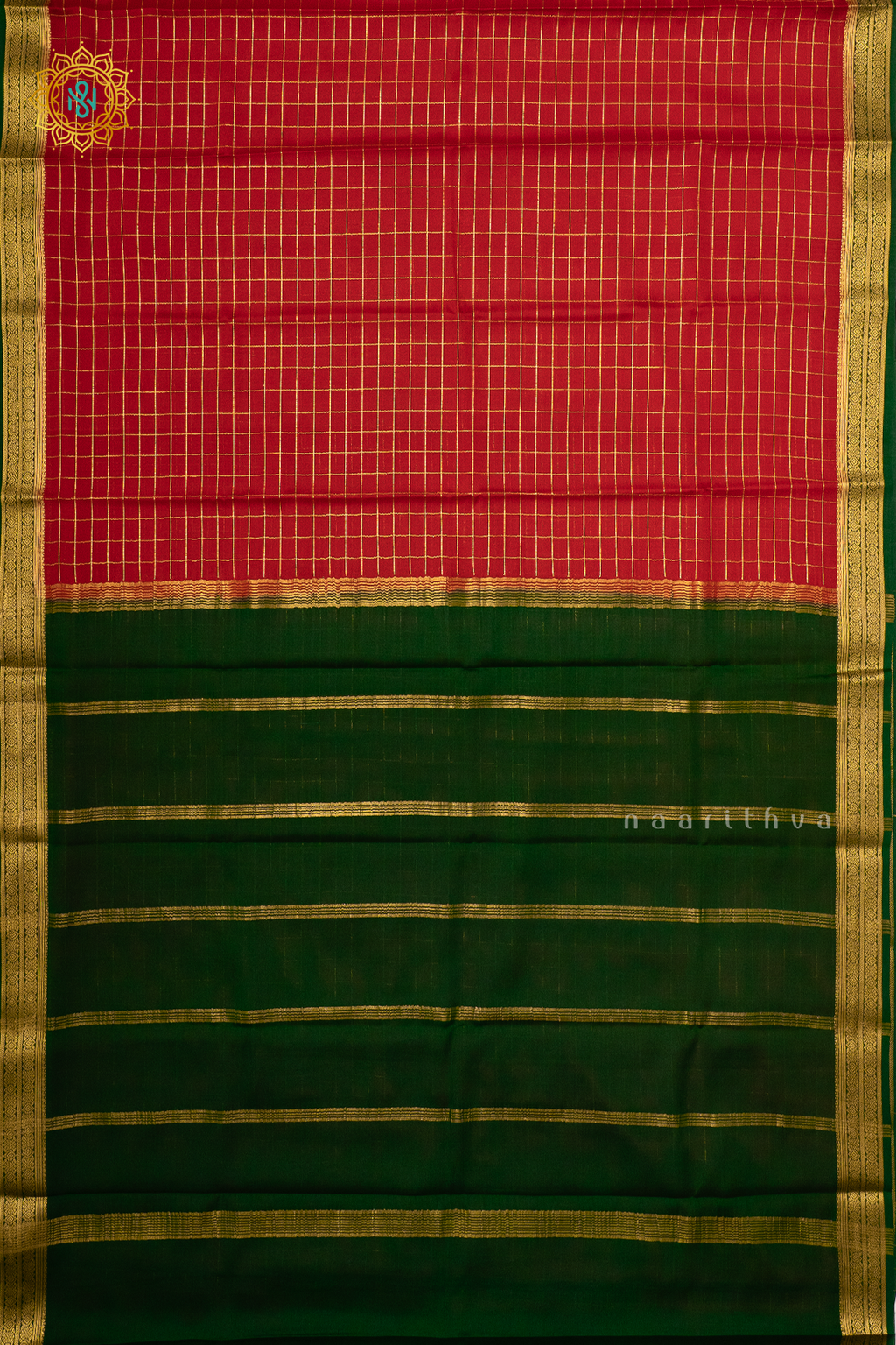 • Design : Zari Checks On The Body With Contrast Zari Border, Pallu & Blouse