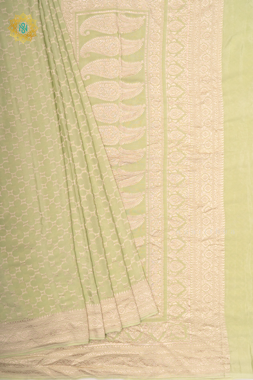 PISTA GREEN - PURE BANARASI CREPE SILK
