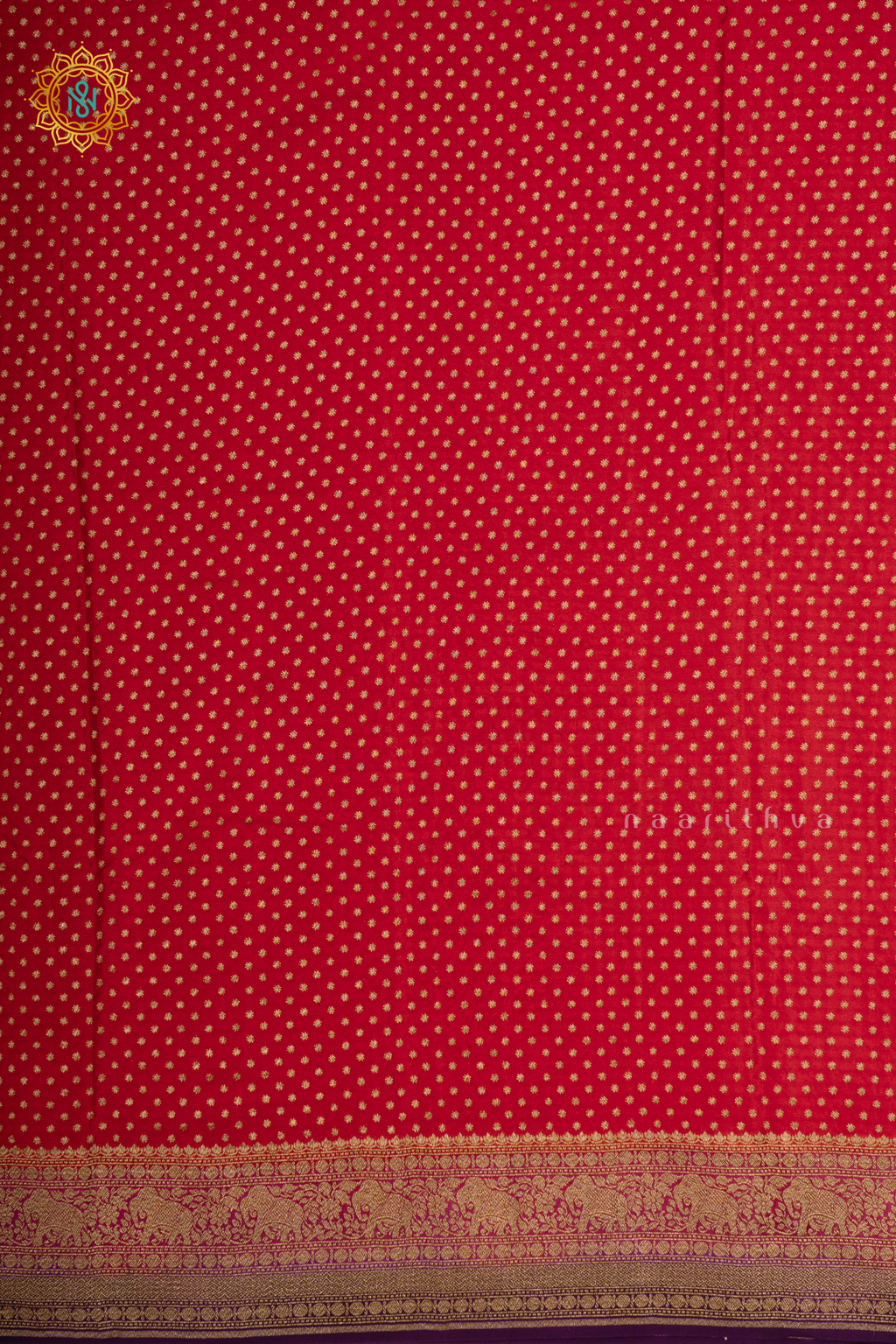 RED WITH PINK & DEEP WINE - PURE BANARASI CREPE SILK