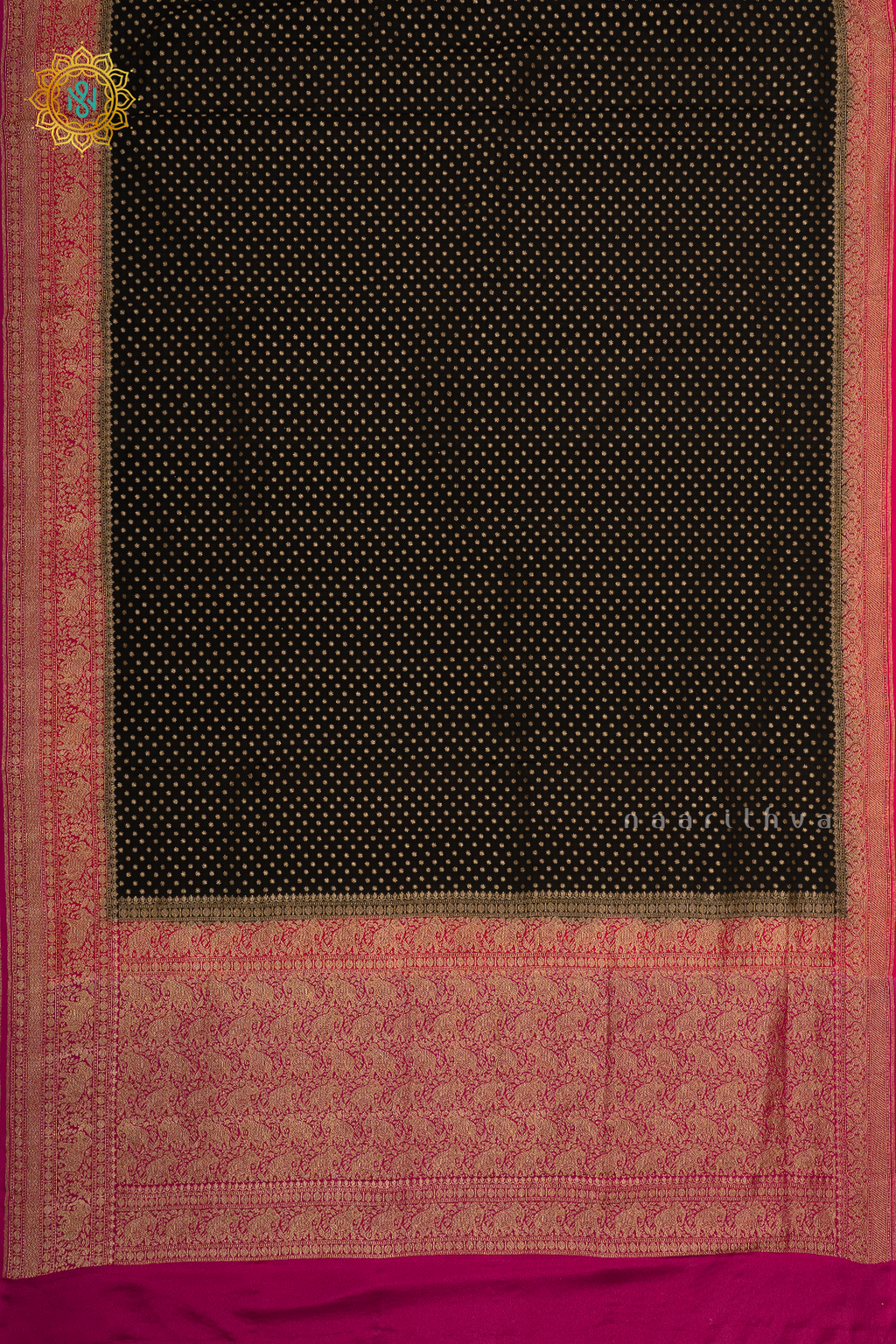 BLACK WITH RED & PINK - PURE BANARASI CREPE SILK