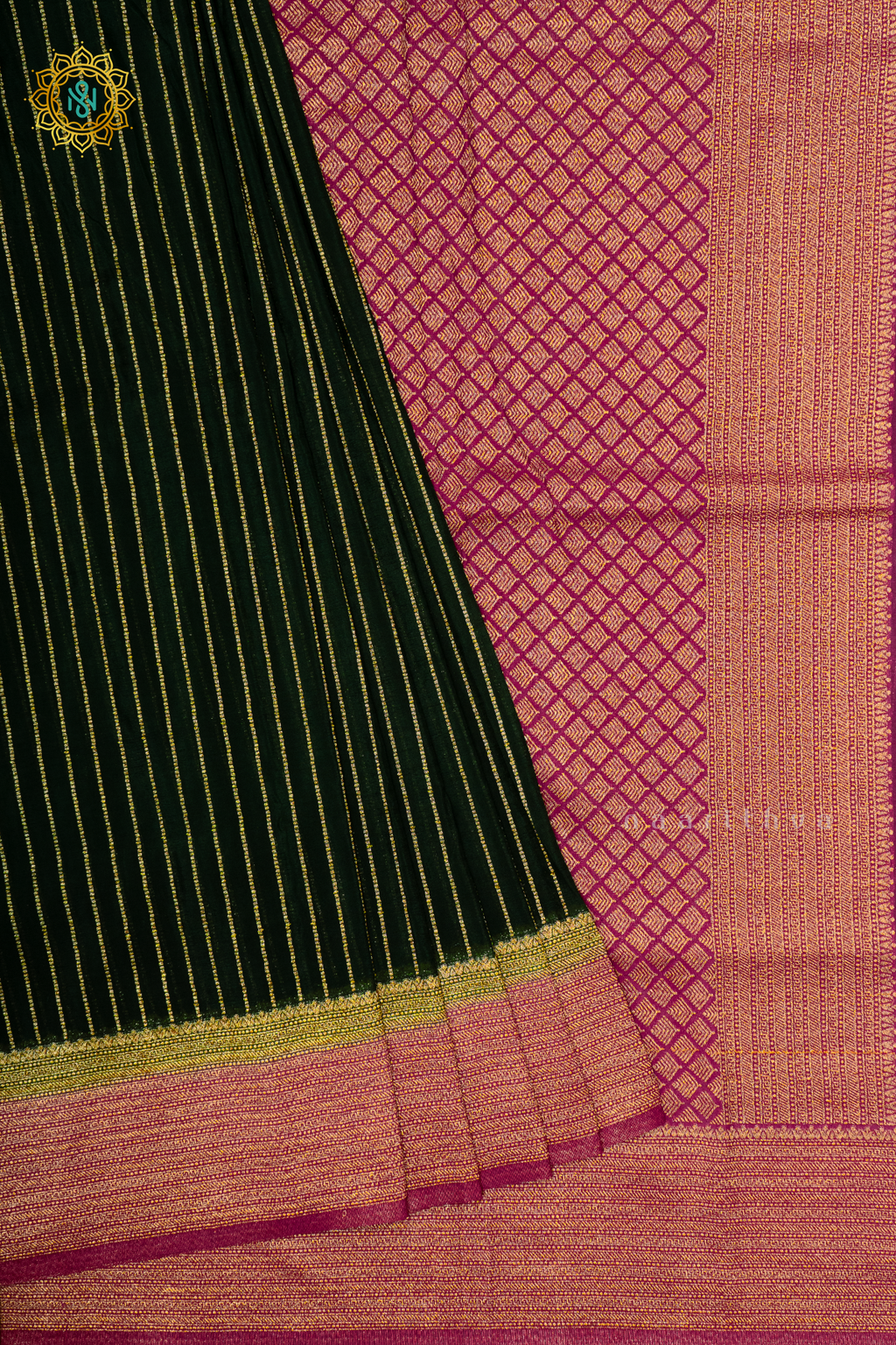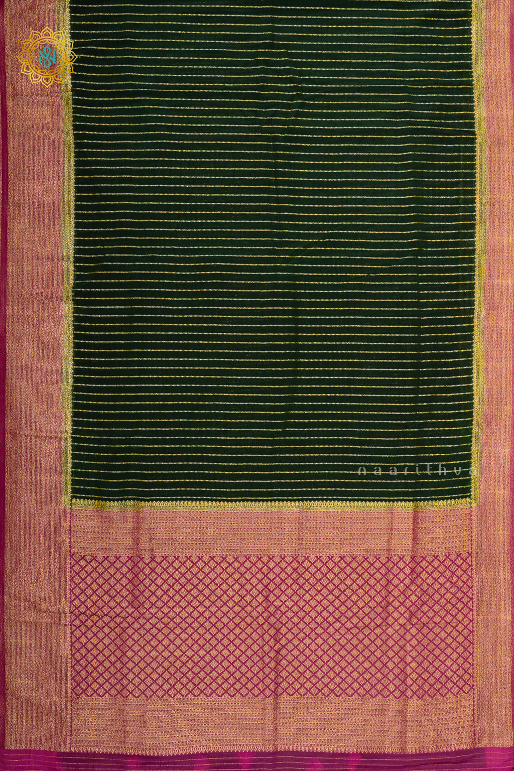 BOTTLE GREEN WITH PINK - SEMI CREPE GEORGETTE