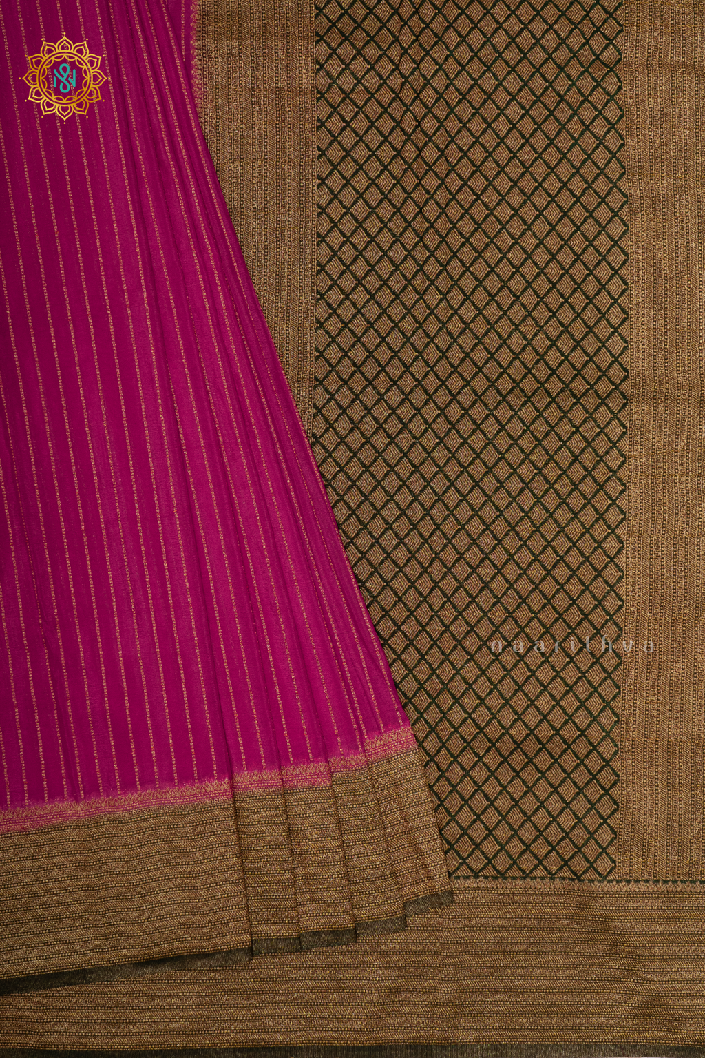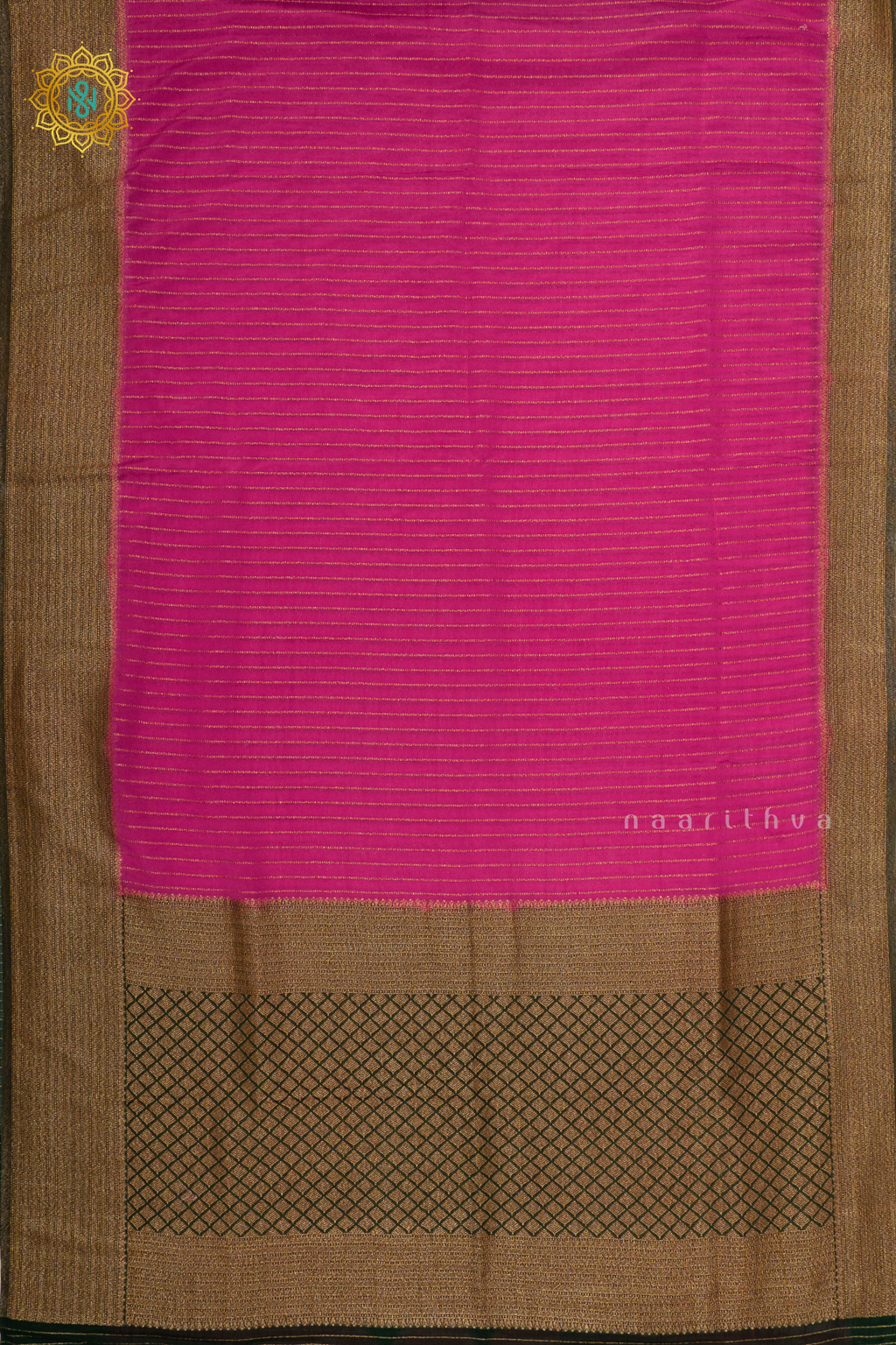 PINK WITH BOTTLE GREEN - SEMI CREPE GEORGETTE