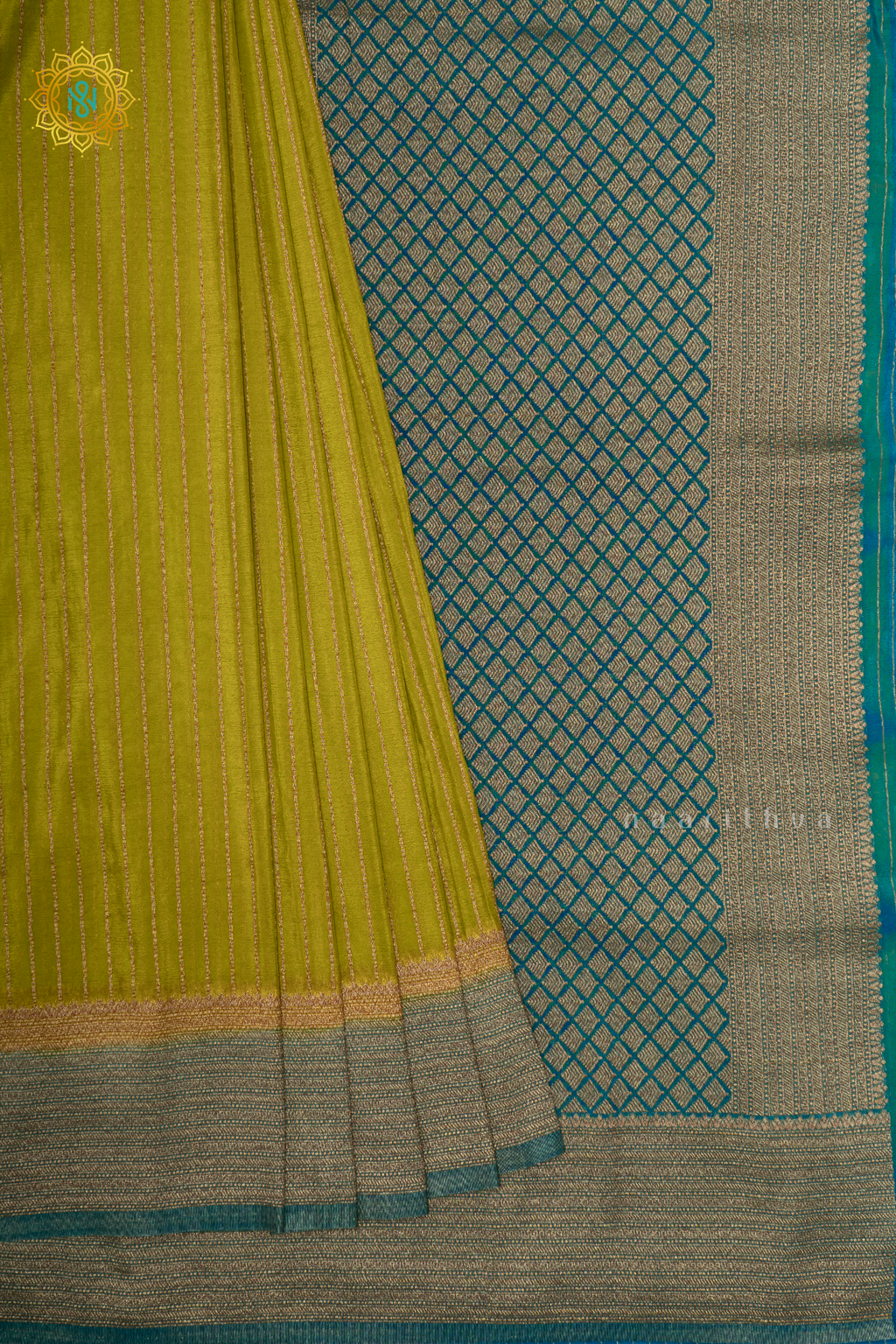 PARROT GREEN WITH SKY BLUE - SEMI CREPE GEORGETTE
