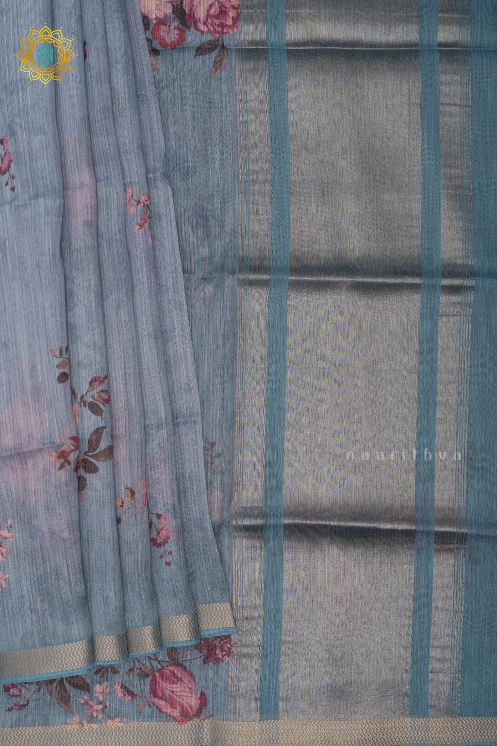 • Design : Printed Body With Zari Border, Pallu & Blouse