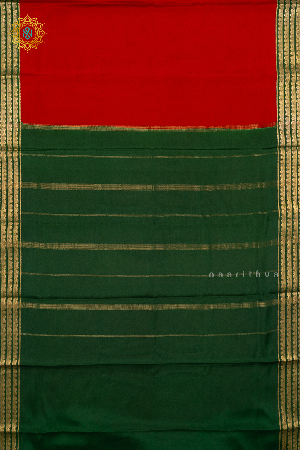 RED WITH GREEN - PURE MYSORE CREPE SILK