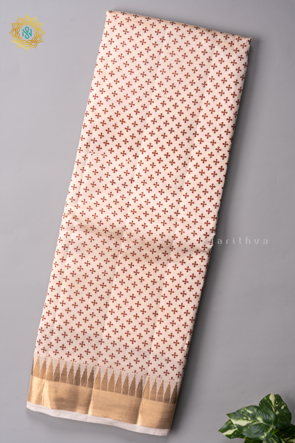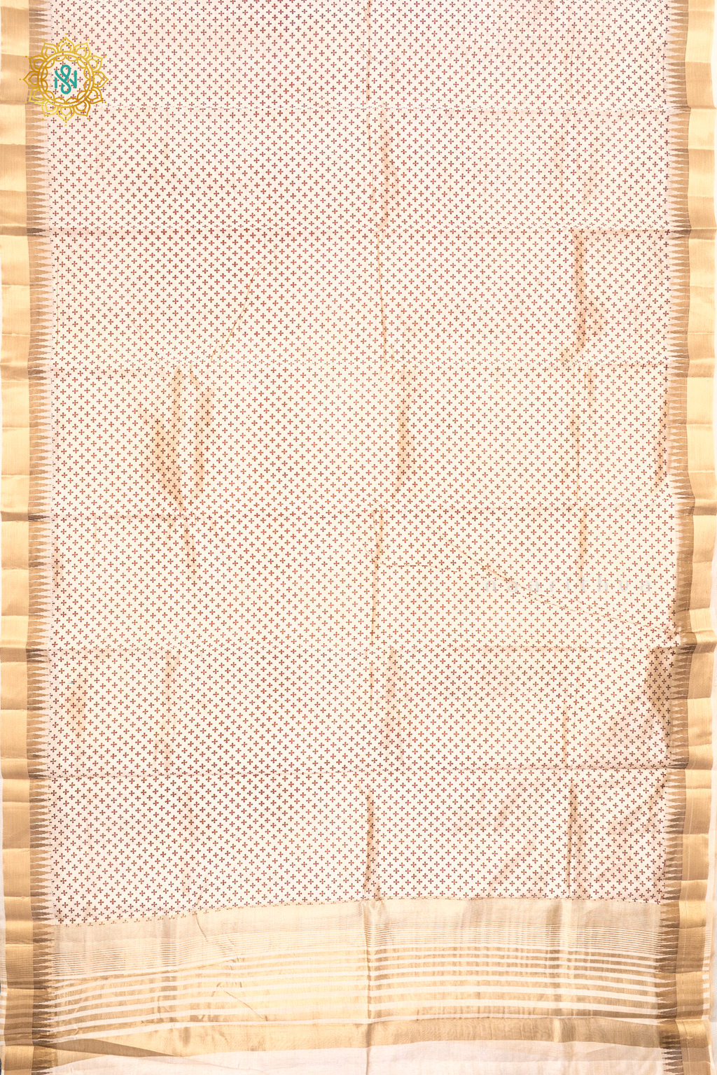 • Design :  Printed Body With Zari Border, Pallu & Blouse