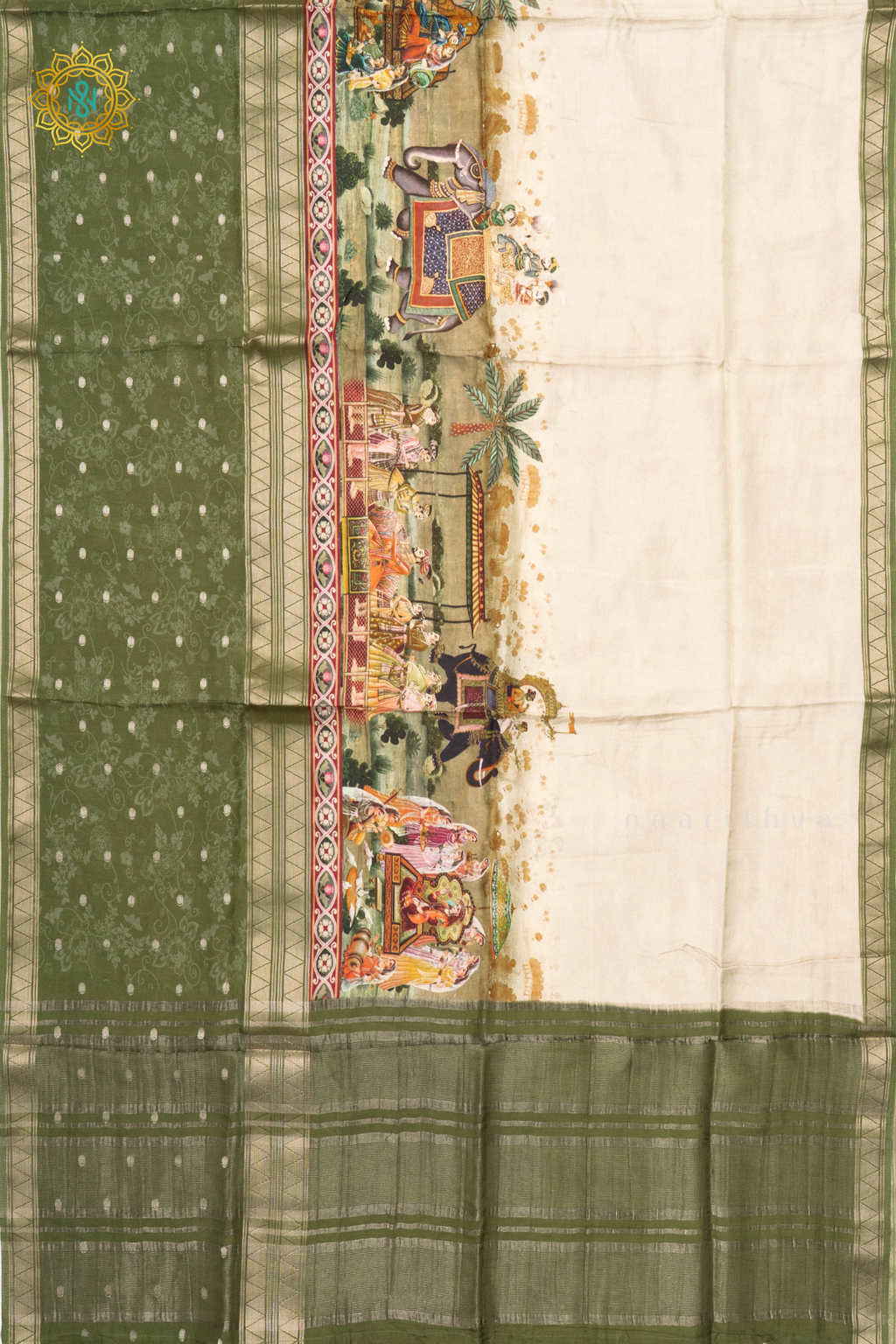 OFF WHITE WITH GREEN - SEMI CREPE SILK