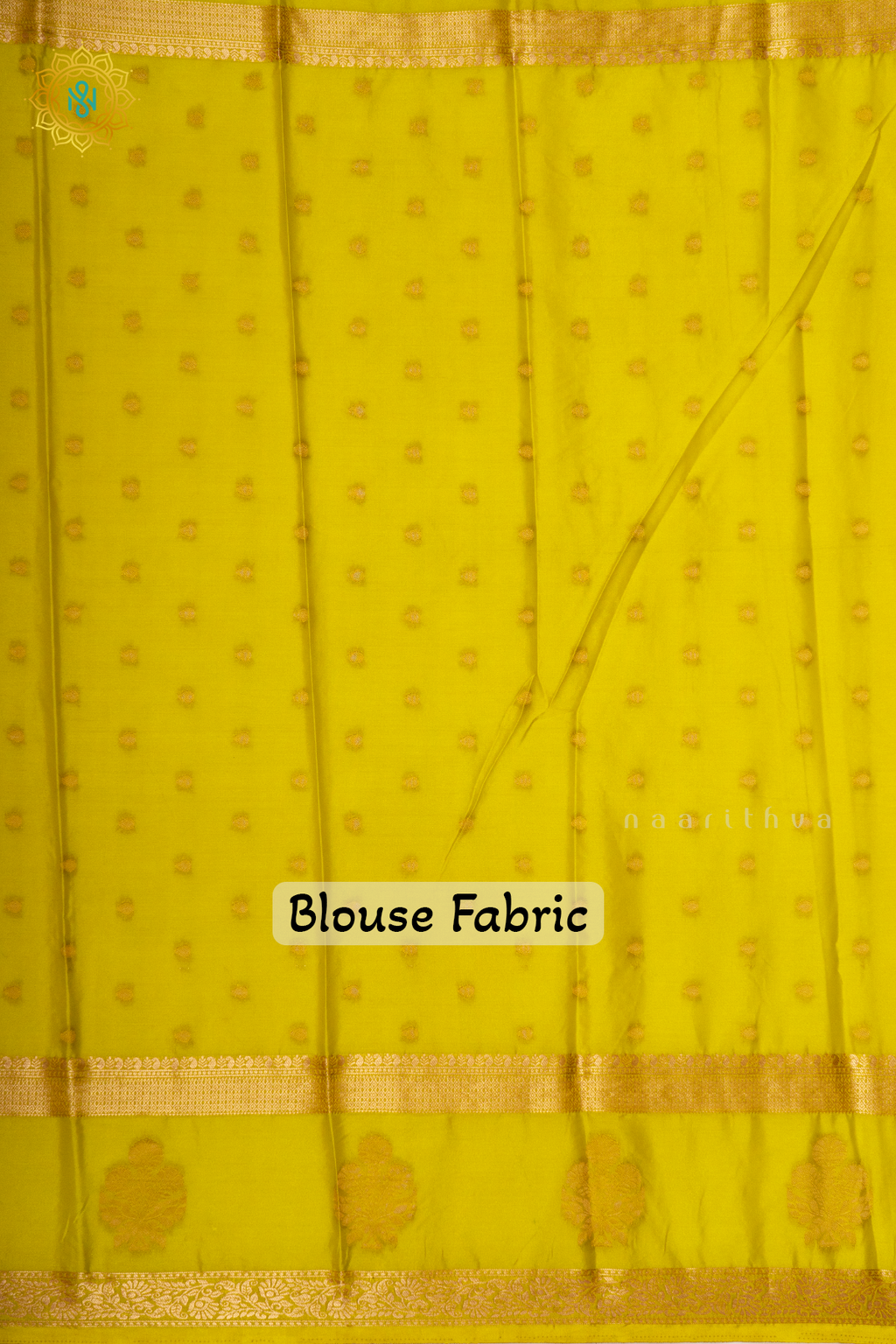 CYAN GREEN WITH LEMON YELLOW - SEMI MYSORE CREPE SILK