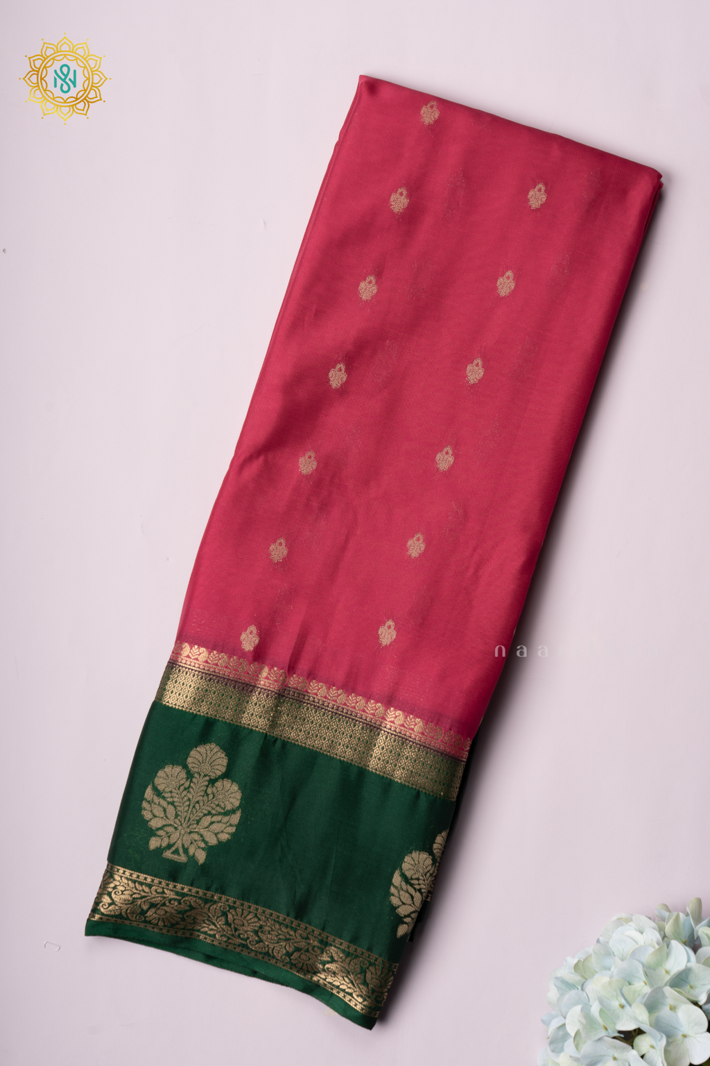 PINK WITH BOTTLE GREEN - SEMI MYSORE CREPE SILK