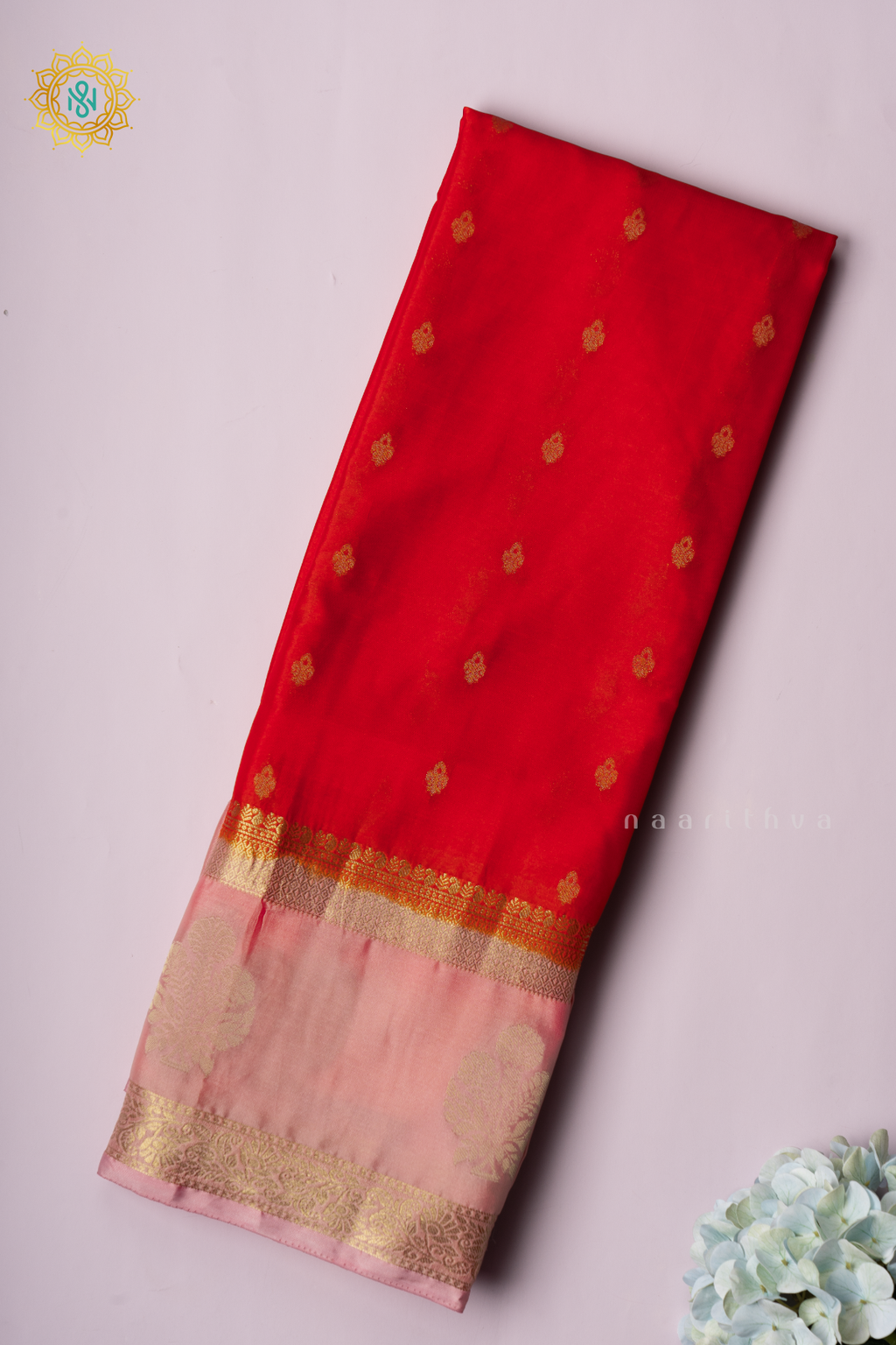 ORANGE WITH PEACH - SEMI MYSORE CREPE SILK
