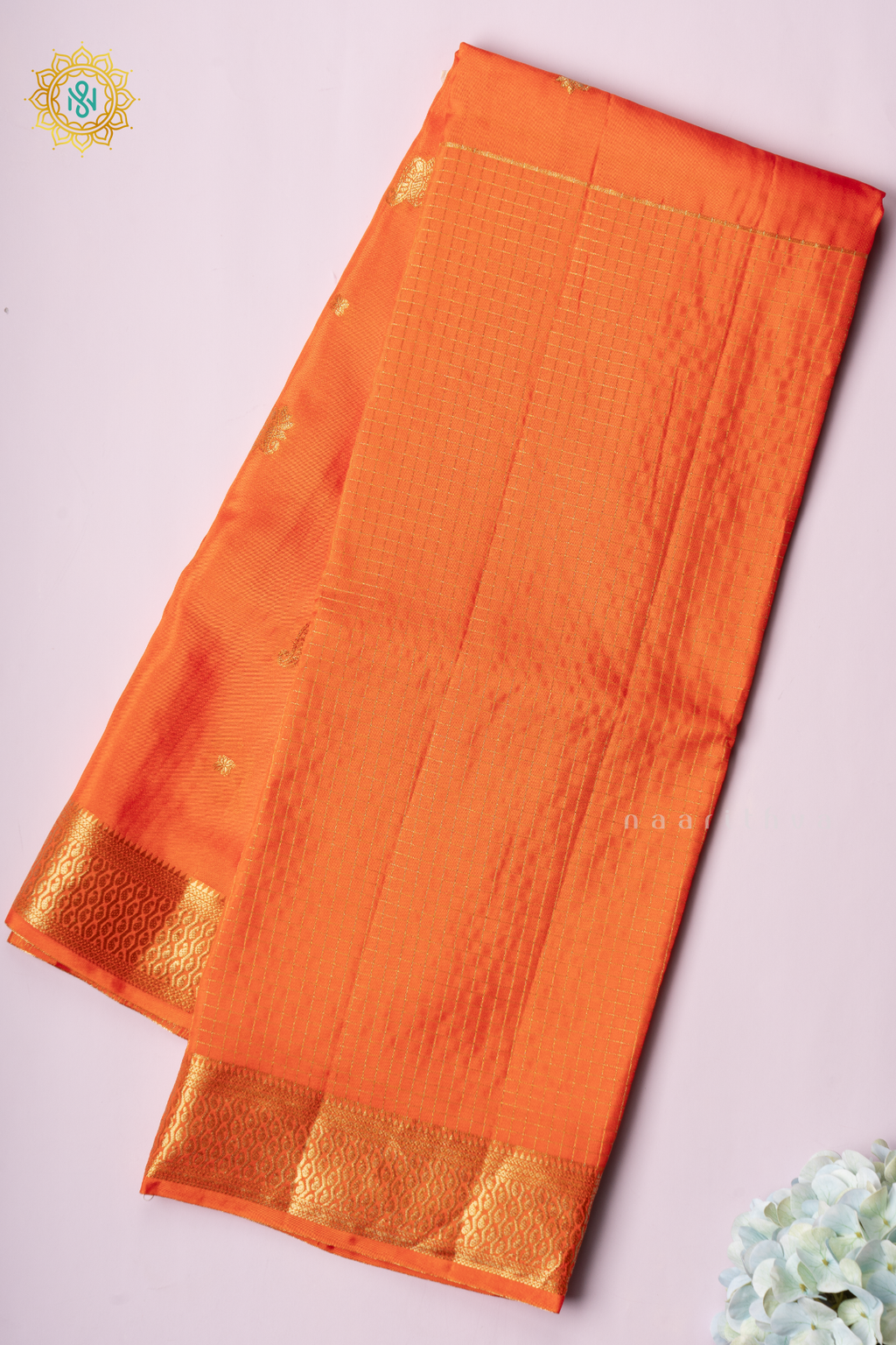 • Design : Zari Checks & Buttas On The Body With Zari Border, Pallu & Blouse In Half & Half Pattern