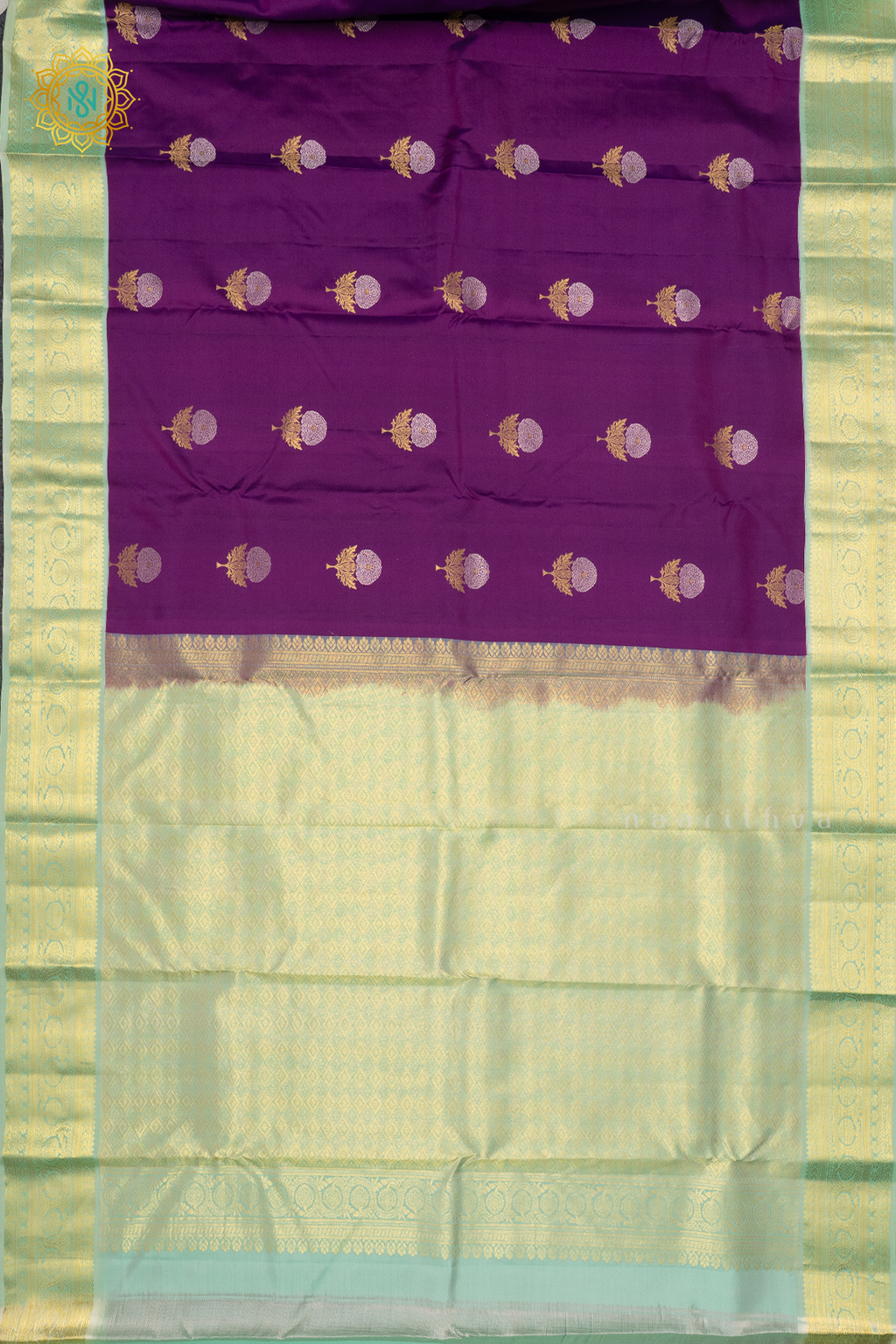 PURPLE WITH AQUA GREEN - PURE KANJIVARAM SILK
