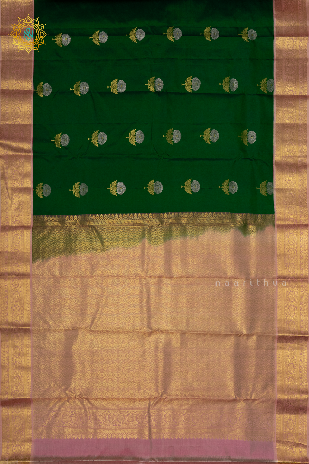 GREEN WITH LIGHT PINK - PURE KANJIVARAM SILK