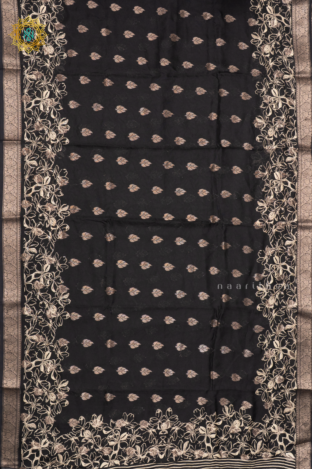 • Design : Zari Buttas & Printed Body With Zari Border, Pallu & Blouse