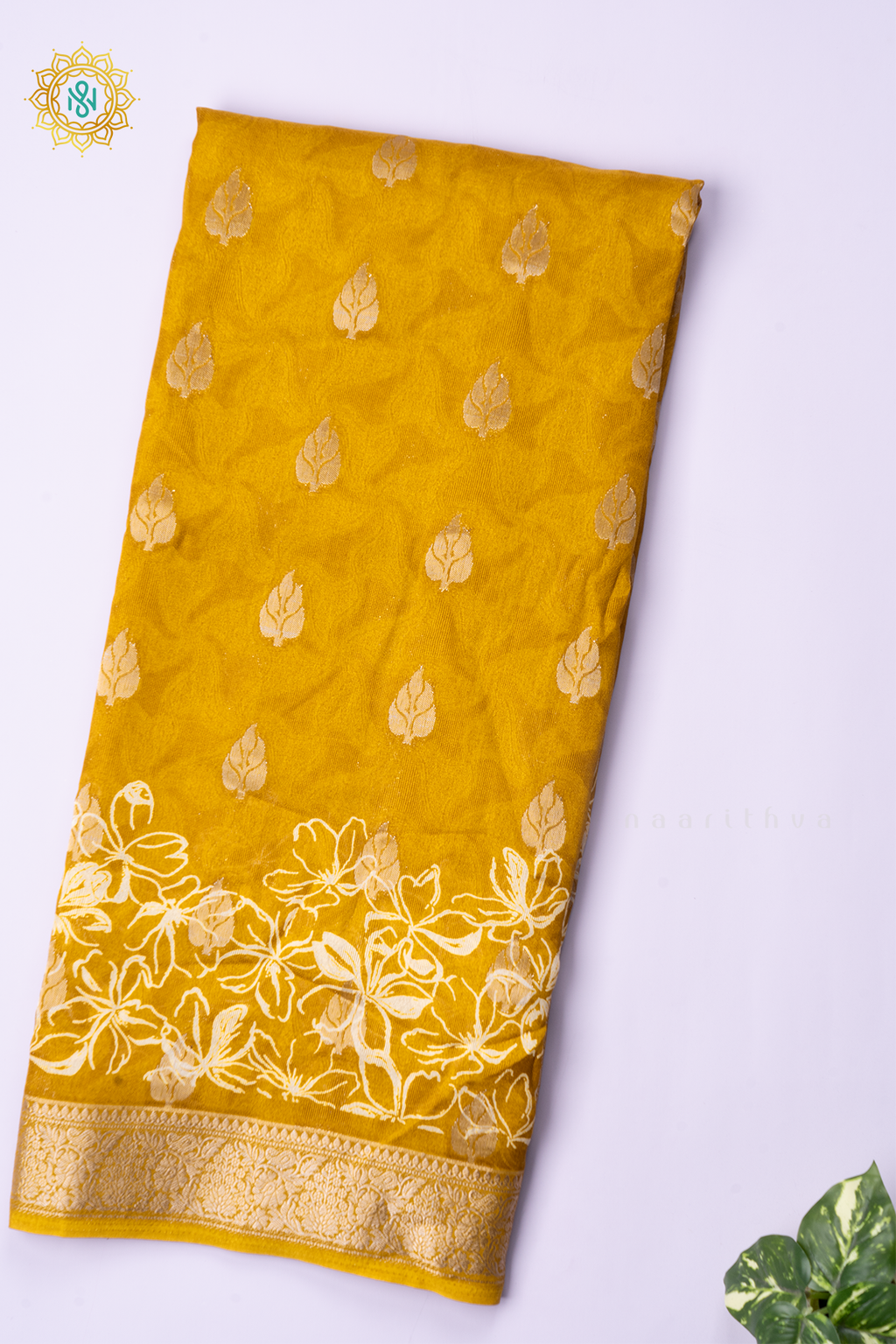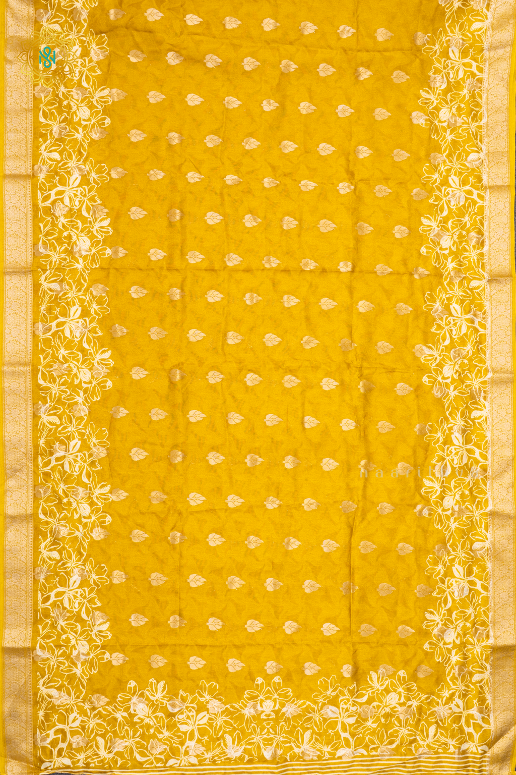 • Design : Zari Buttas & Printed Body With Zari Border, Pallu & Blouse