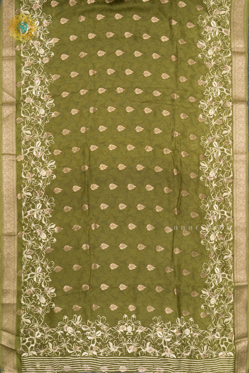 • Design : Zari Buttas & Printed Body With Zari Border, Pallu & Blouse