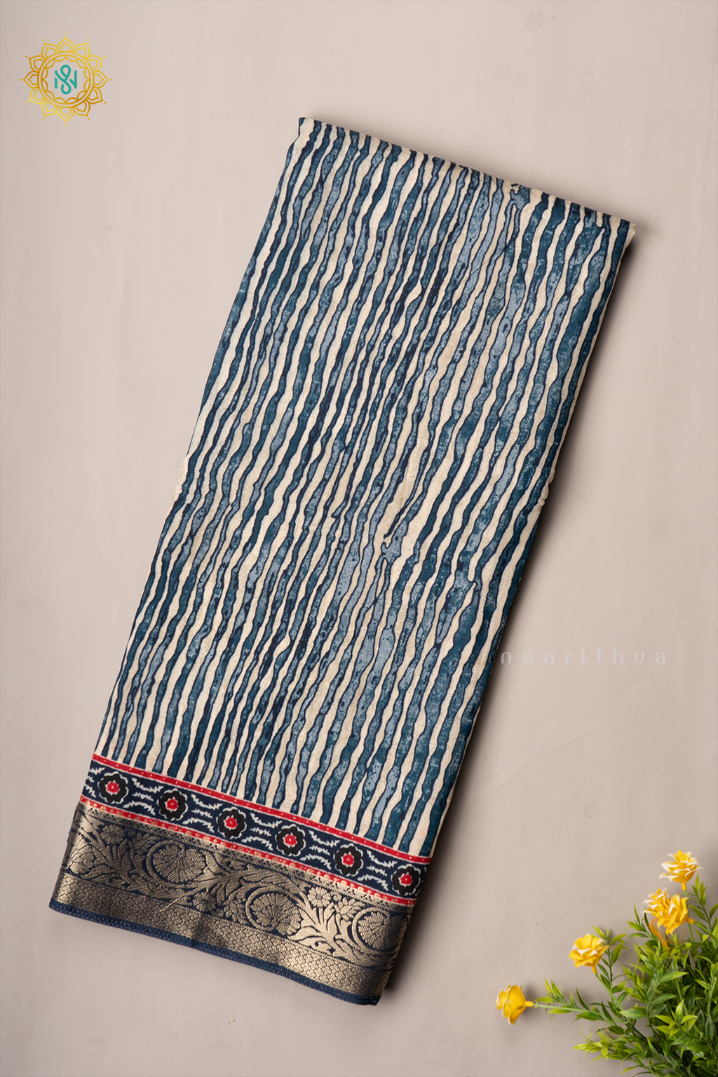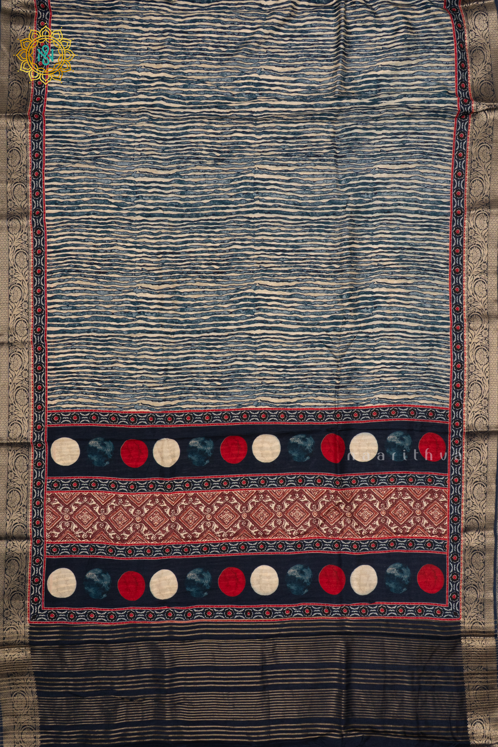 • Design : Printed Body With Zari Border, Pallu & Blouse