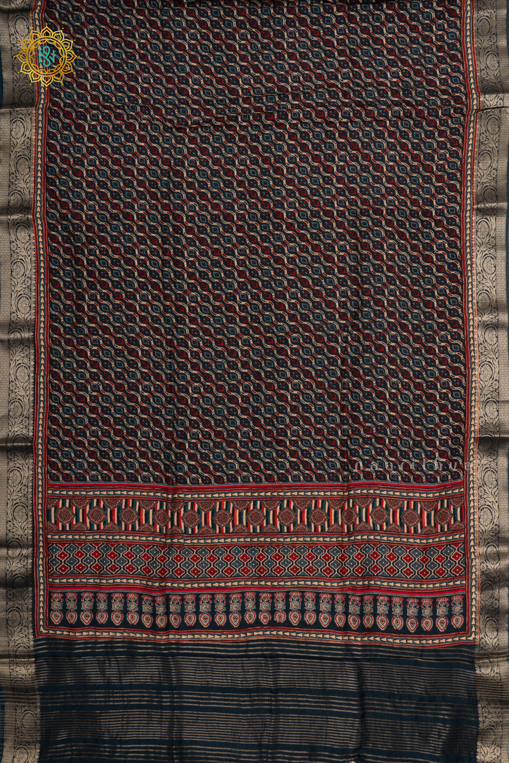• Design : Printed Body With Zari Border, Pallu & Blouse