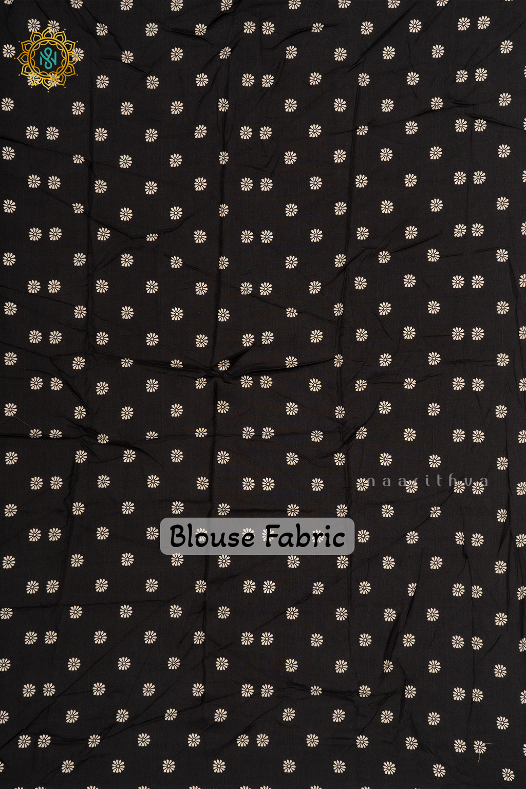 • Design : Printed Body With Zari Border, Pallu & Blouse