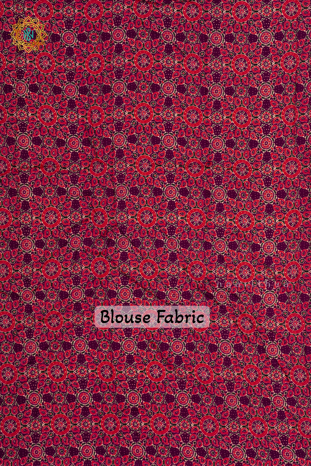 • Design : Printed Body With Zari Border, Pallu & Blouse