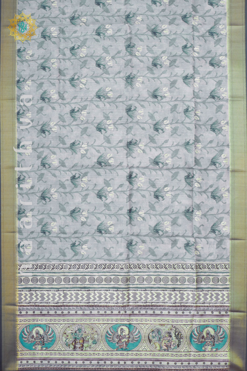 • Design : Printed Body With Zari Border, Pallu & Blouse