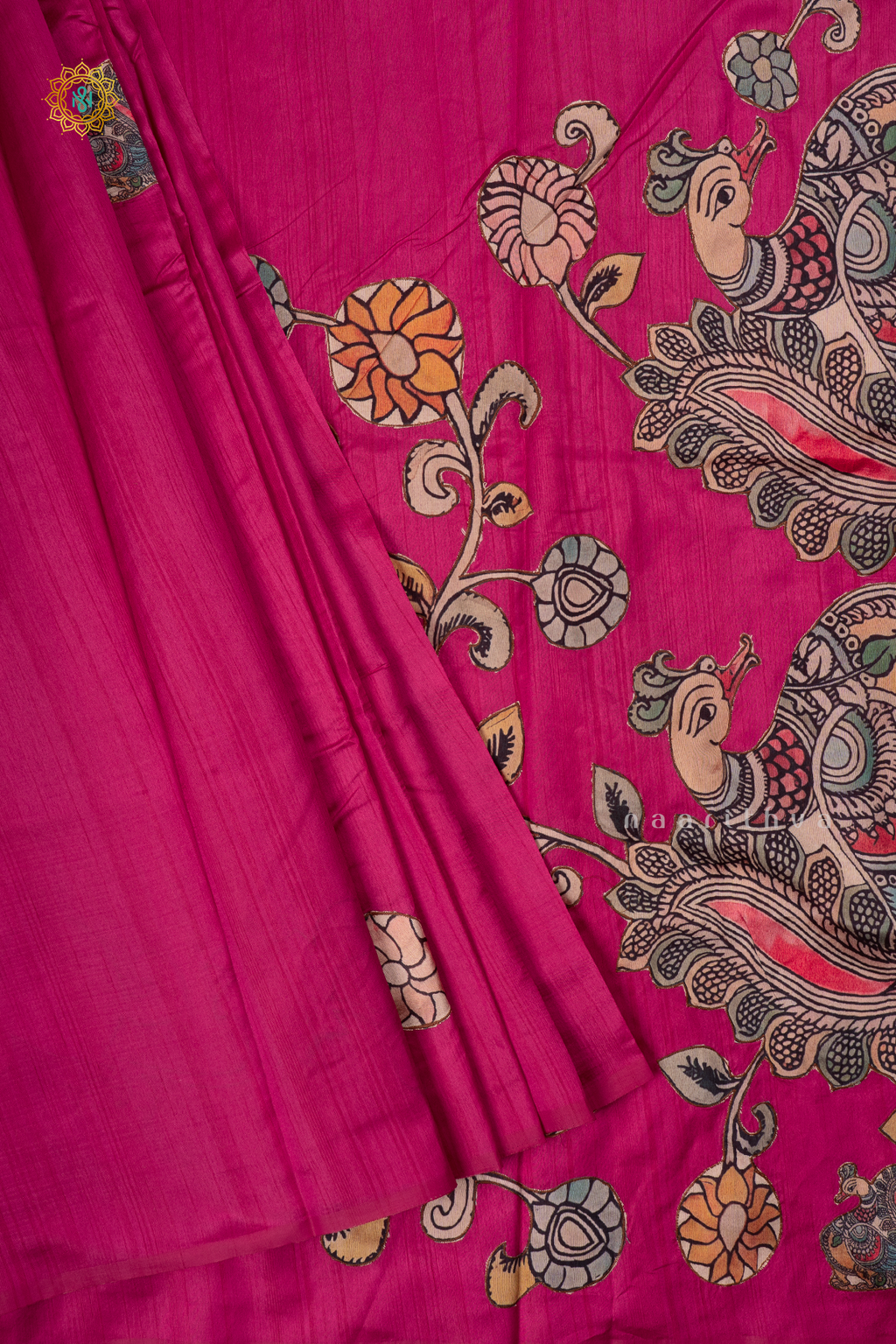 RANI PINK - SEMI TUSSAR WITH APPLIQUE WORK