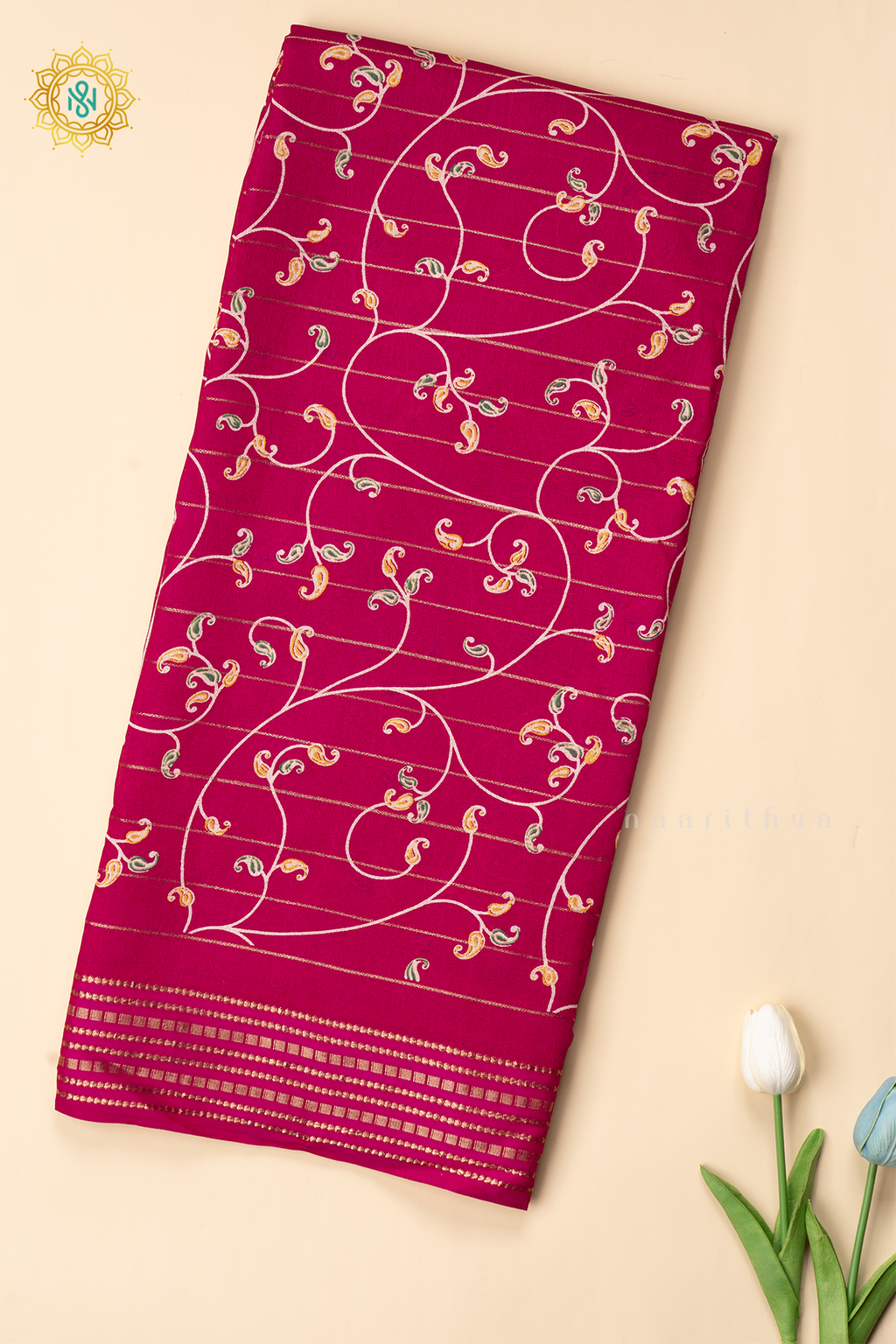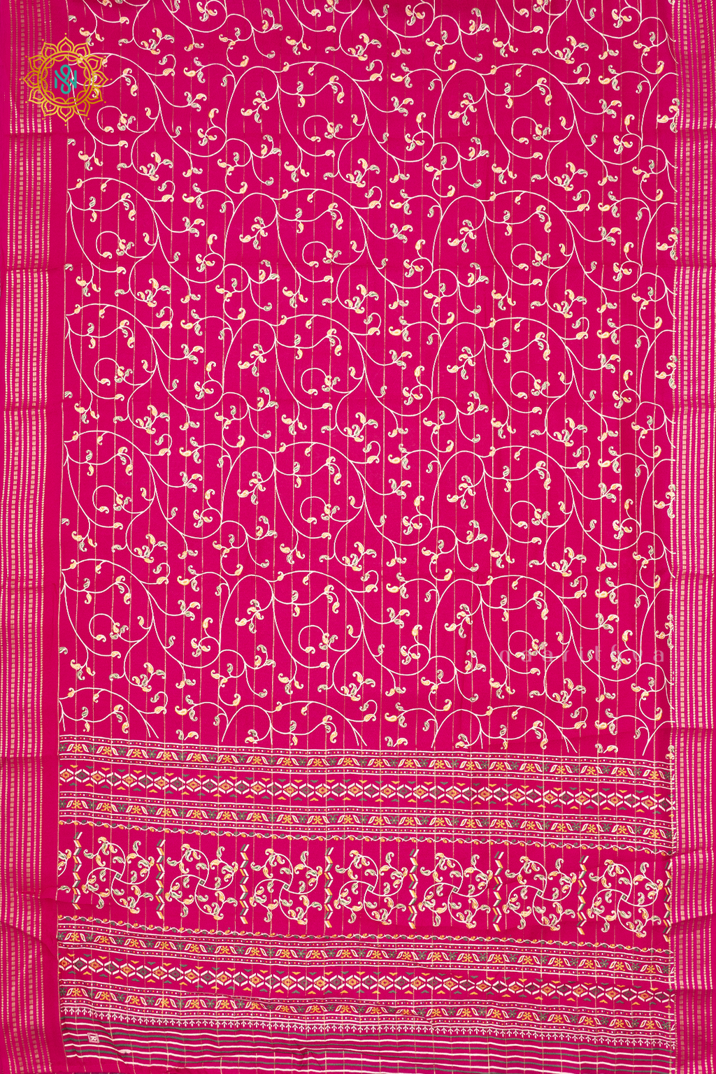 • Design : Printed Body With Zari Border, Pallu & Blouse