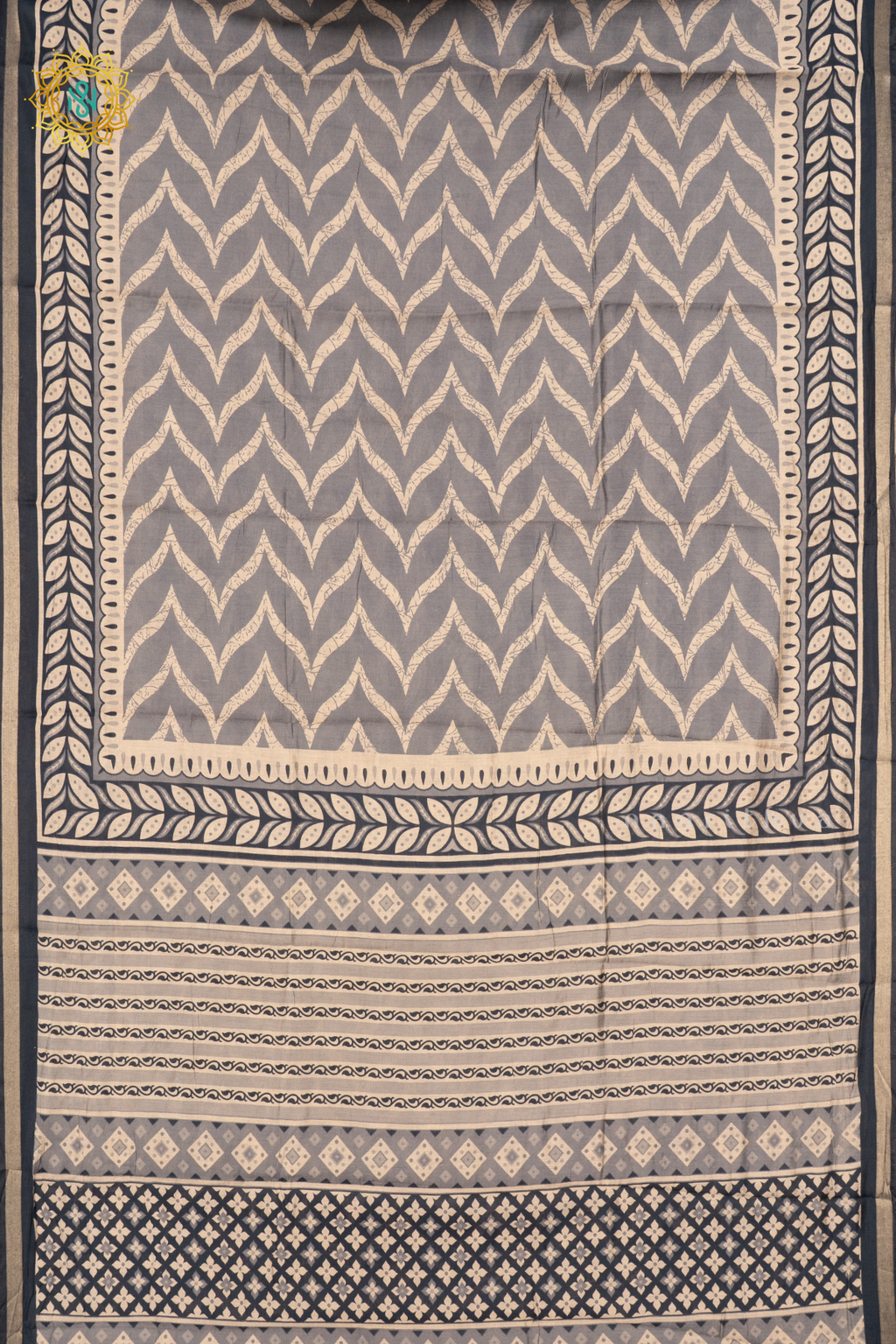 • Design : Zigzag Printed Body With Contrast Border, Pallu & Blouse