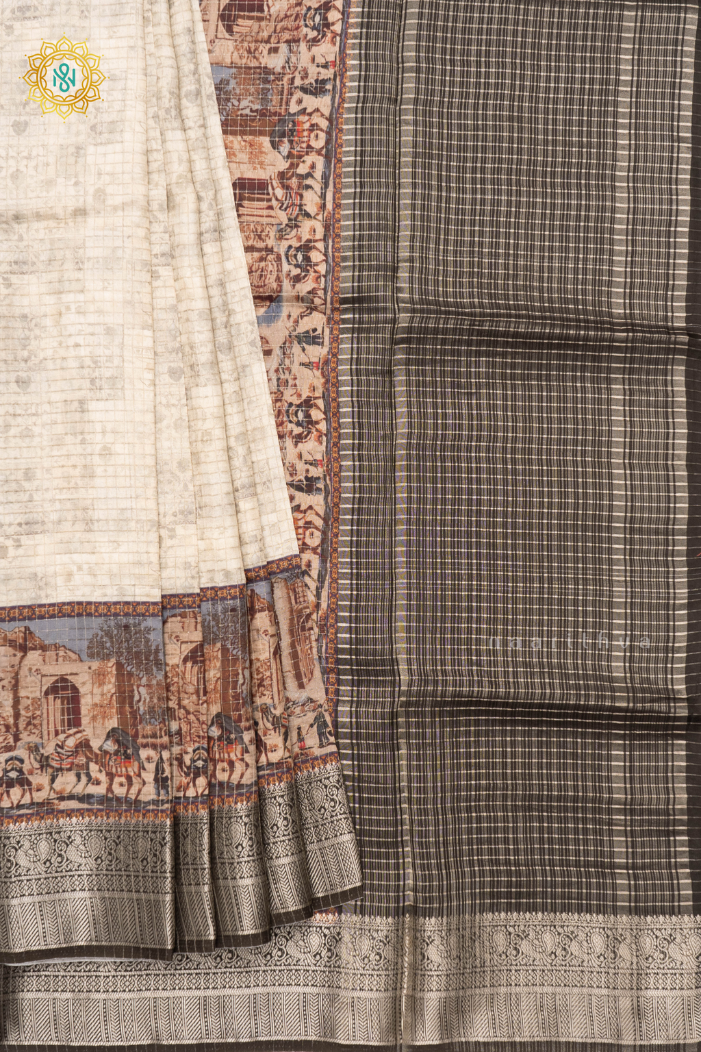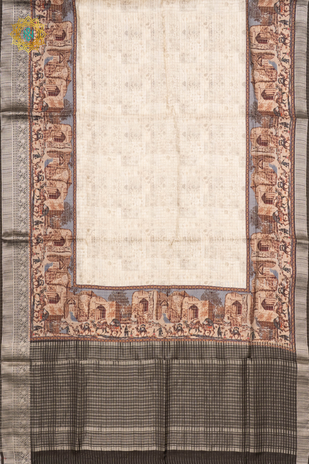 WHITE WITH OLIVE GREEN - SEMI CREPE SILK