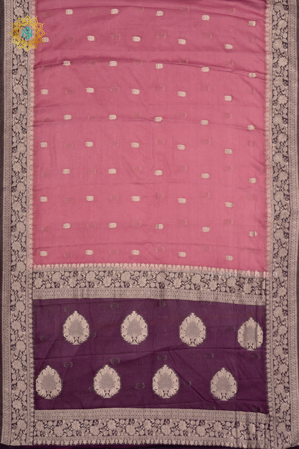 PINKISH LAVENDER WITH PURPLE - SEMI CHIFFON BANARASI