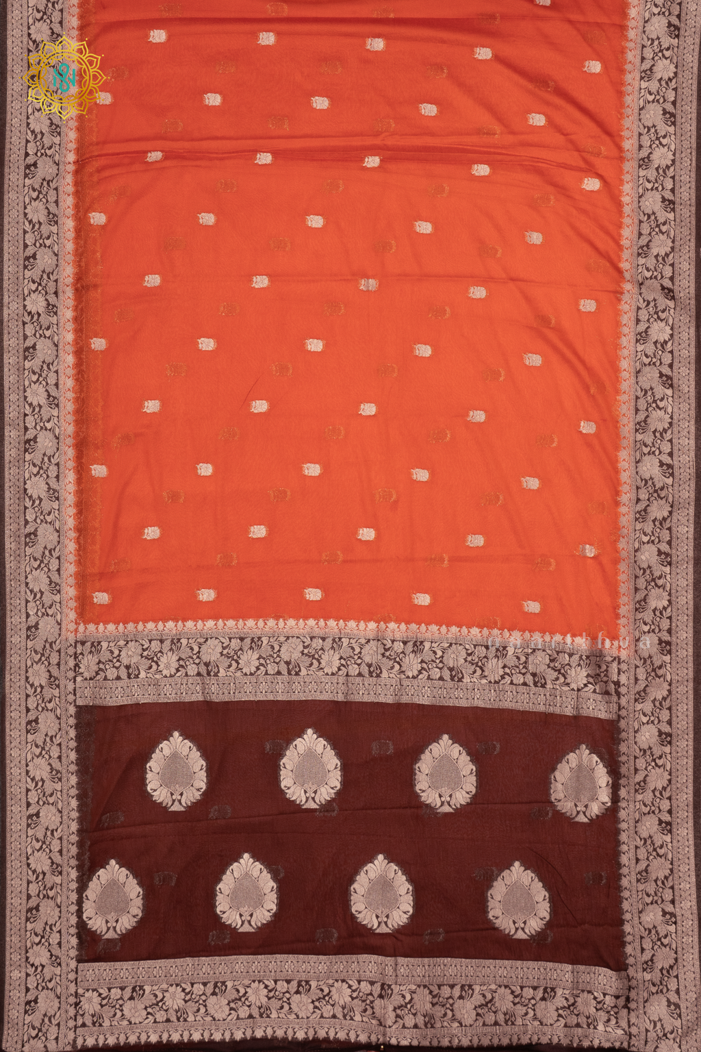 ORANGE WITH BROWN - SEMI CHIFFON BANARASI