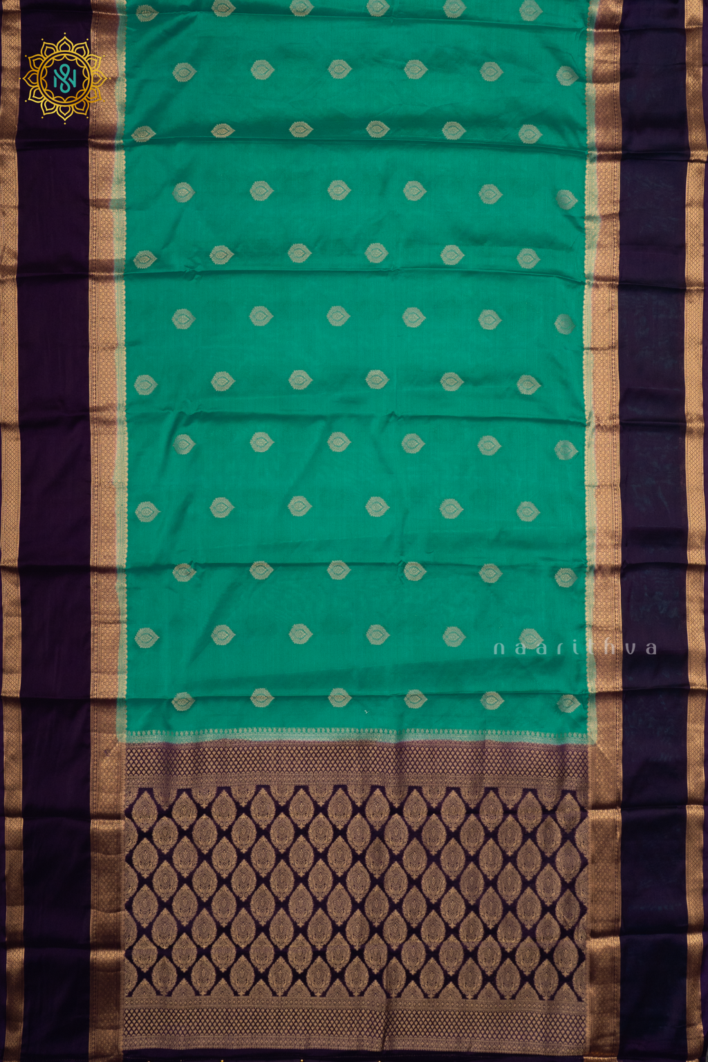 AQUA GREEN WITH PURPLE - SEMI MYSORE CREPE SILK