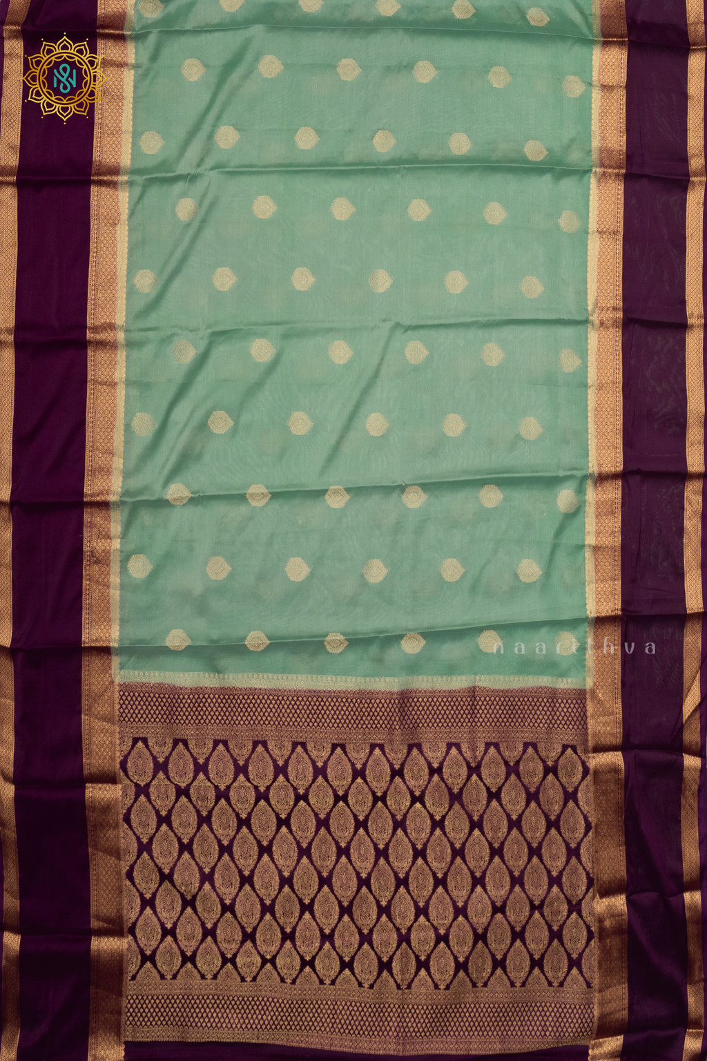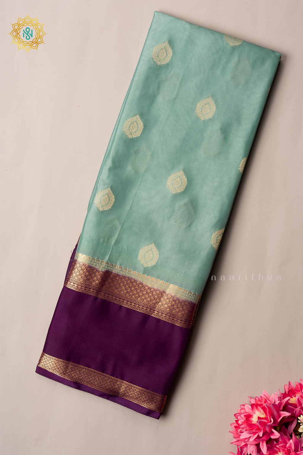 AQUA BLUE WITH WINE - SEMI MYSORE CREPE SILK