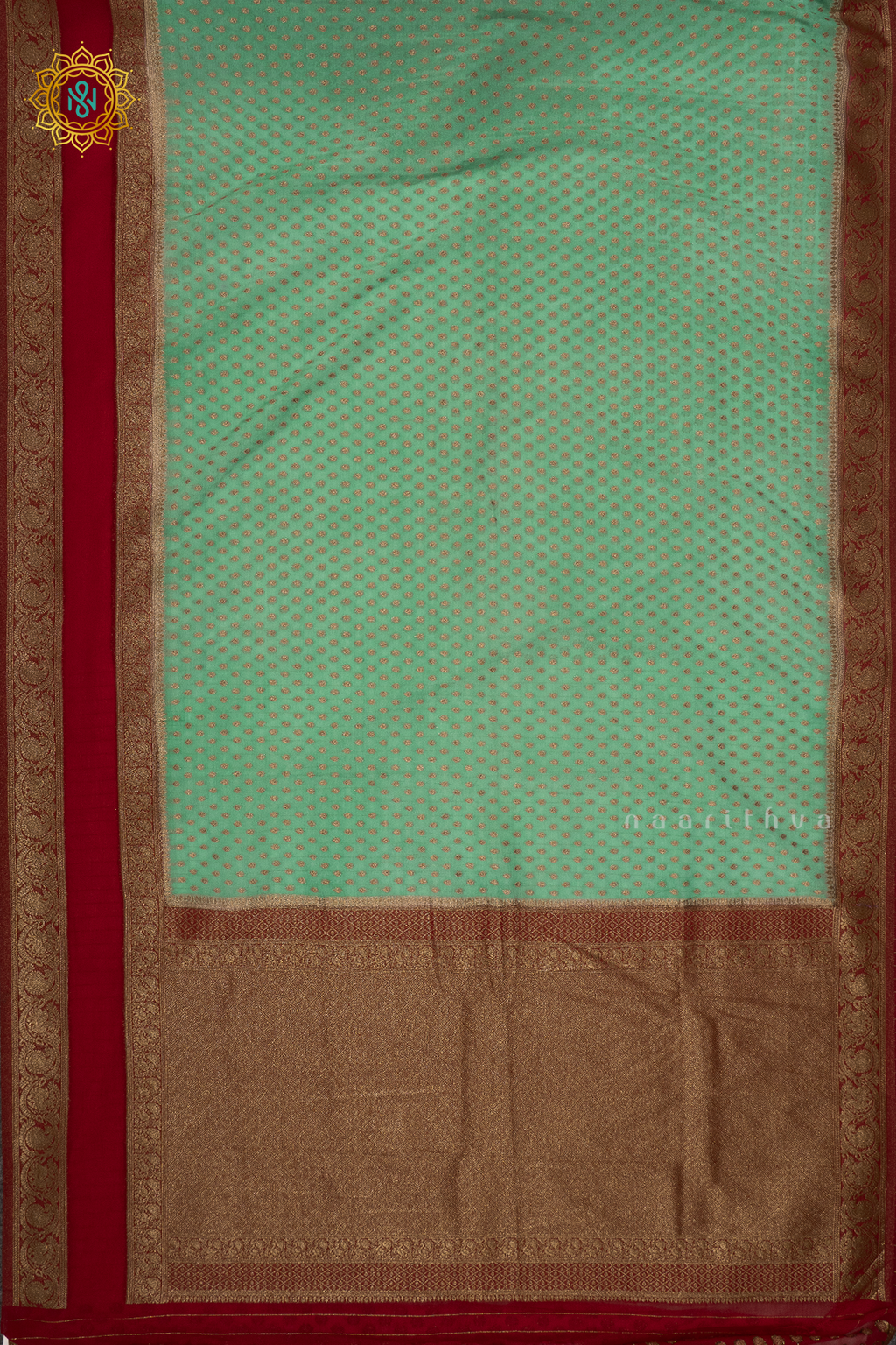 AQUA GREEN WITH RED - SEMI CREPE GEORGETTE