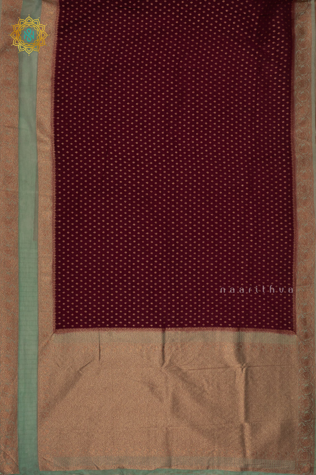 WINE WITH AQUA BLUE - SEMI CREPE GEORGETTE