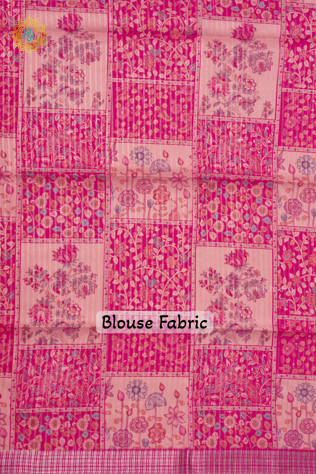 • Design : Printed Body With Contrast Zari Border, Pallu & Blouse
